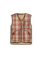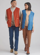 Create vests for the entire family in matching or coordinating fabrics. Vests in children and adult sizes have contrast lining, front zipper closure, outer pockets, bonus inside pocket and shirttail hem. View B vest has additional zippered chest pocket.