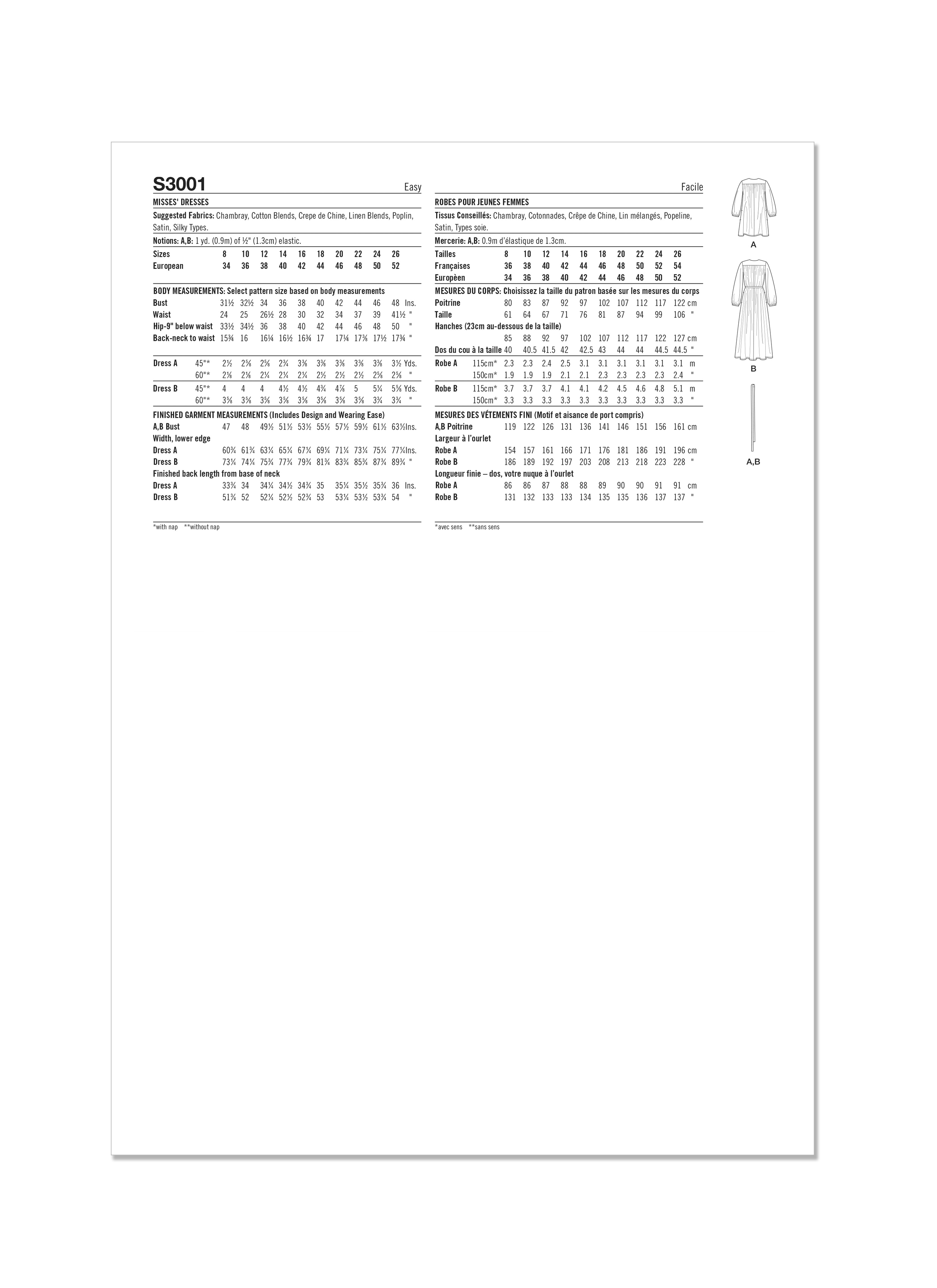 Simplicity Sewing Pattern S3001 - Misses' Dresses