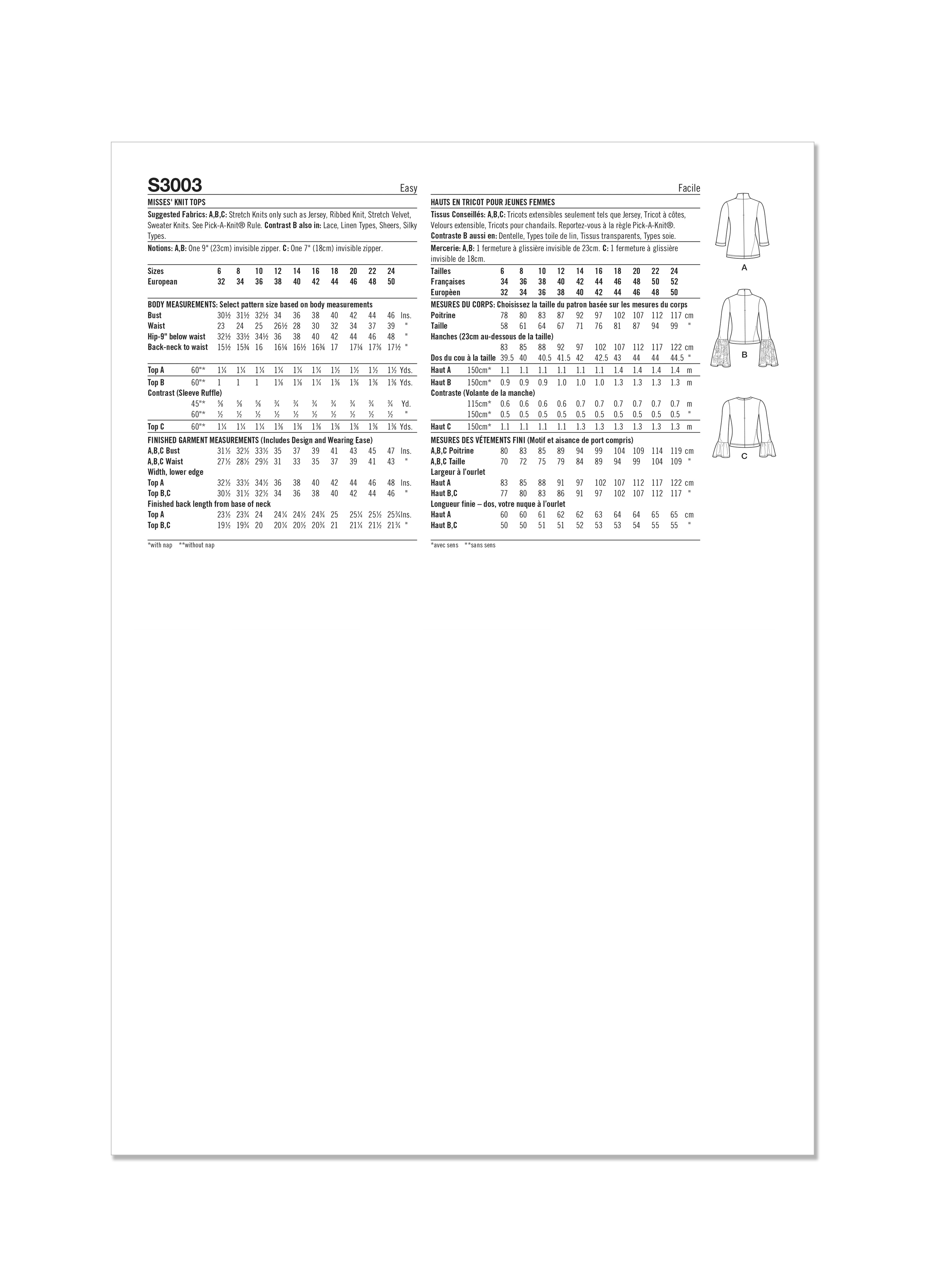 Simplicity Sewing Pattern S3003 - Misses' Knit Tops