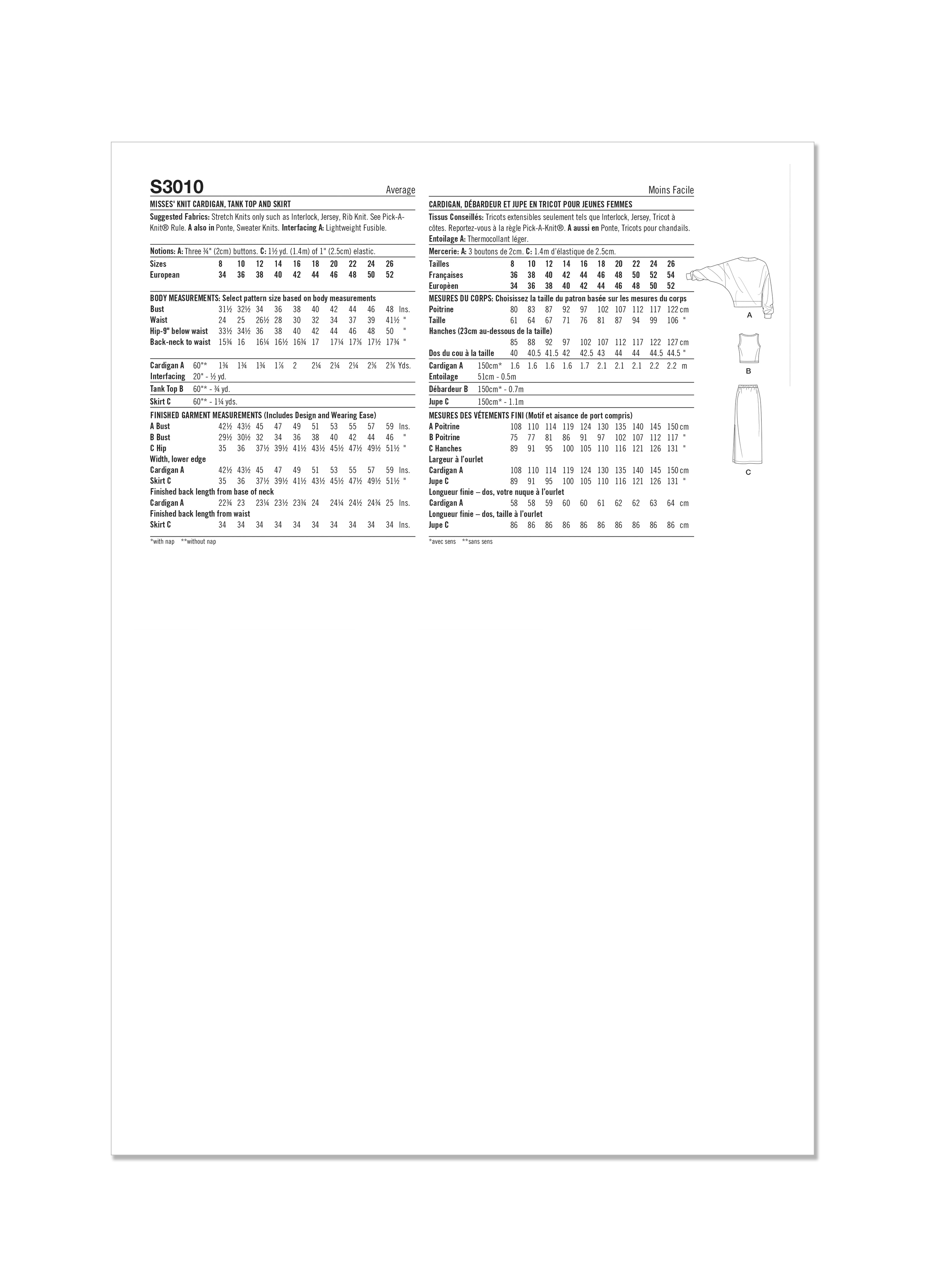 Simplicity Sewing Pattern S3010 - Misses' Knit Cardigan, Tank Top and Skirt by Mimi G Style