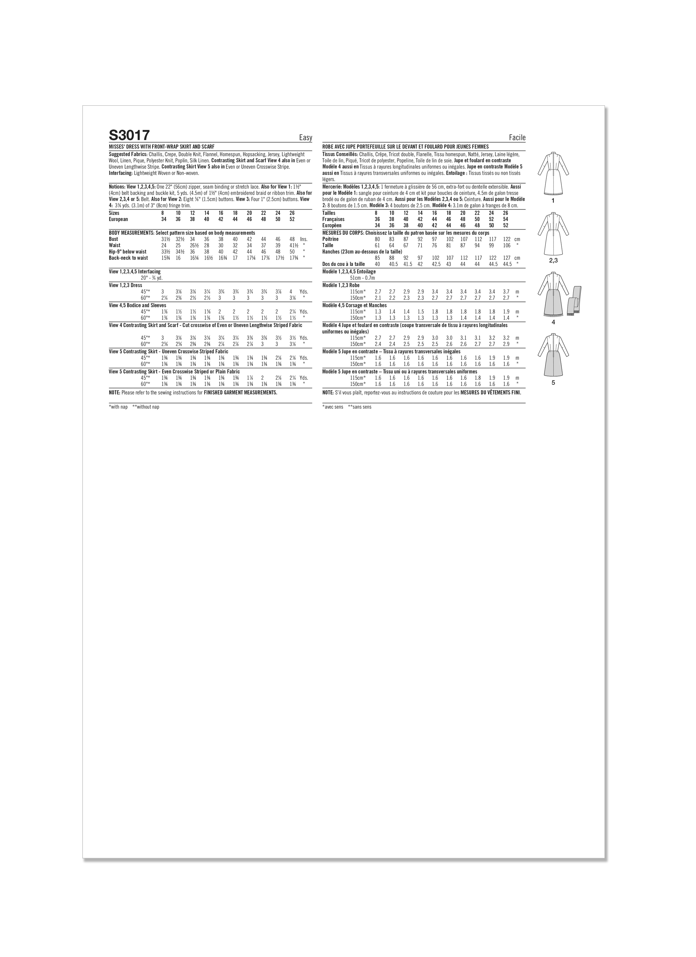 Simplicity Sewing Pattern S3017 - Misses' Dress with Front-Wrap Skirt and Scarf
