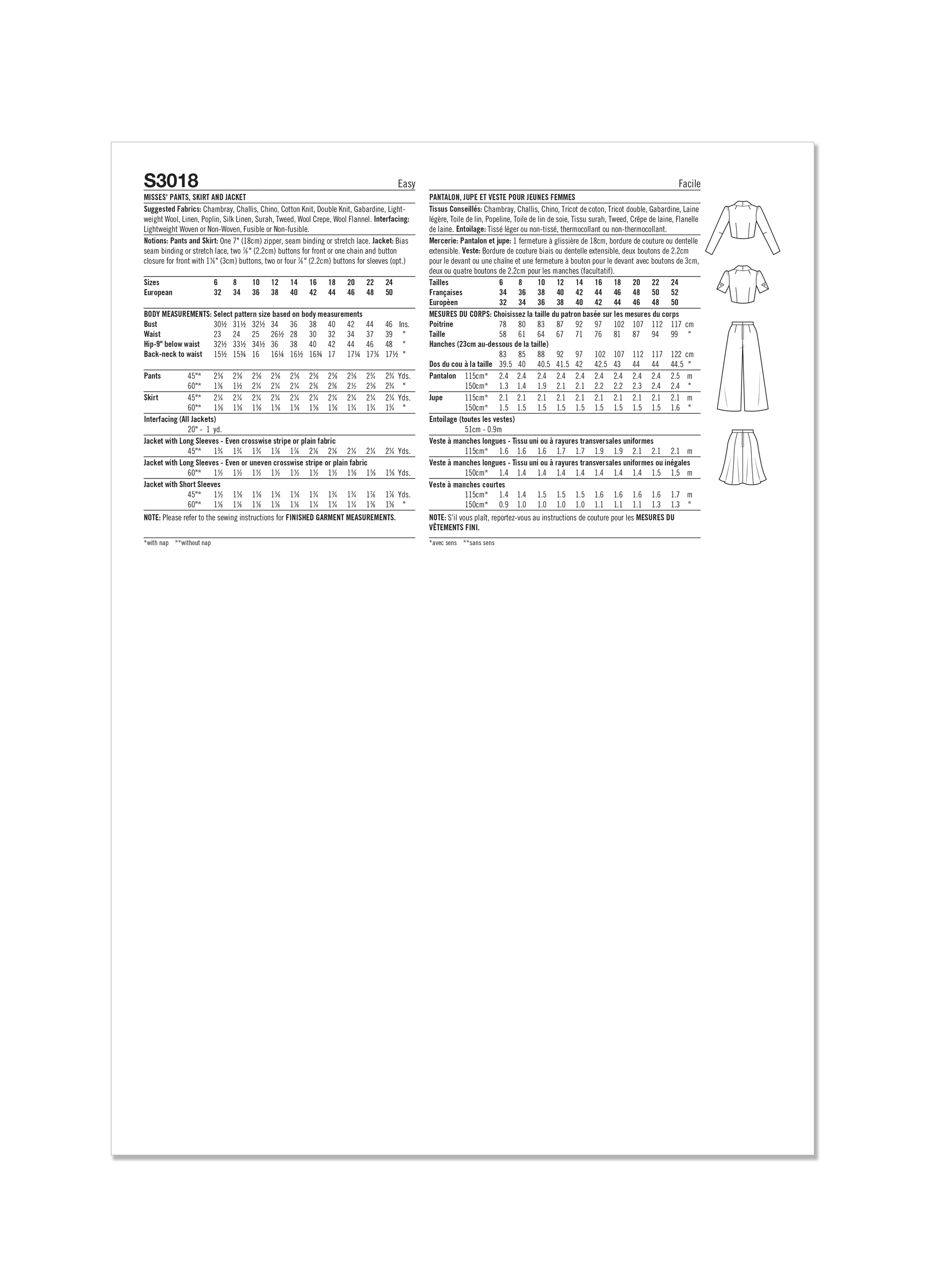 Simplicity Sewing Pattern S3018 - Misses' Pants, Skirt and Jacket