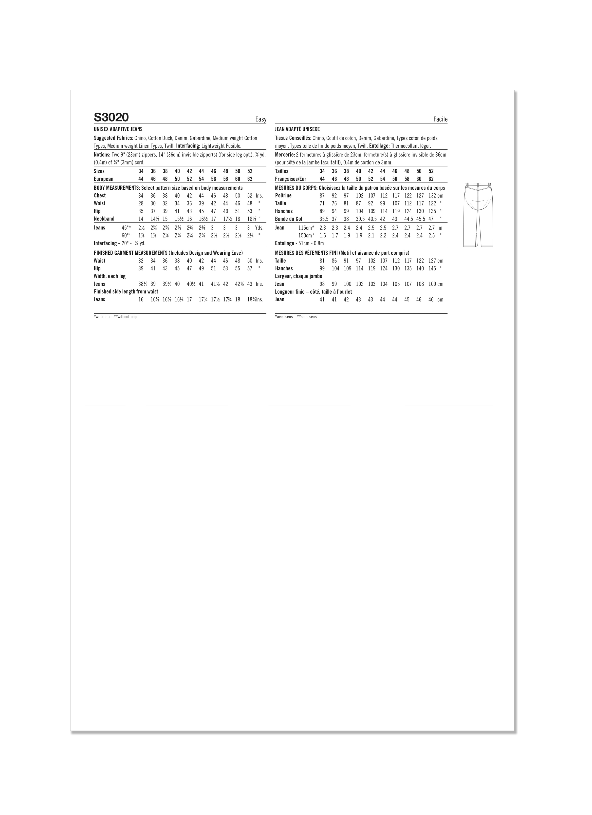 Simplicity Sewing Pattern S3020 - Unisex Adaptive Jeans by Sewn Adaptive