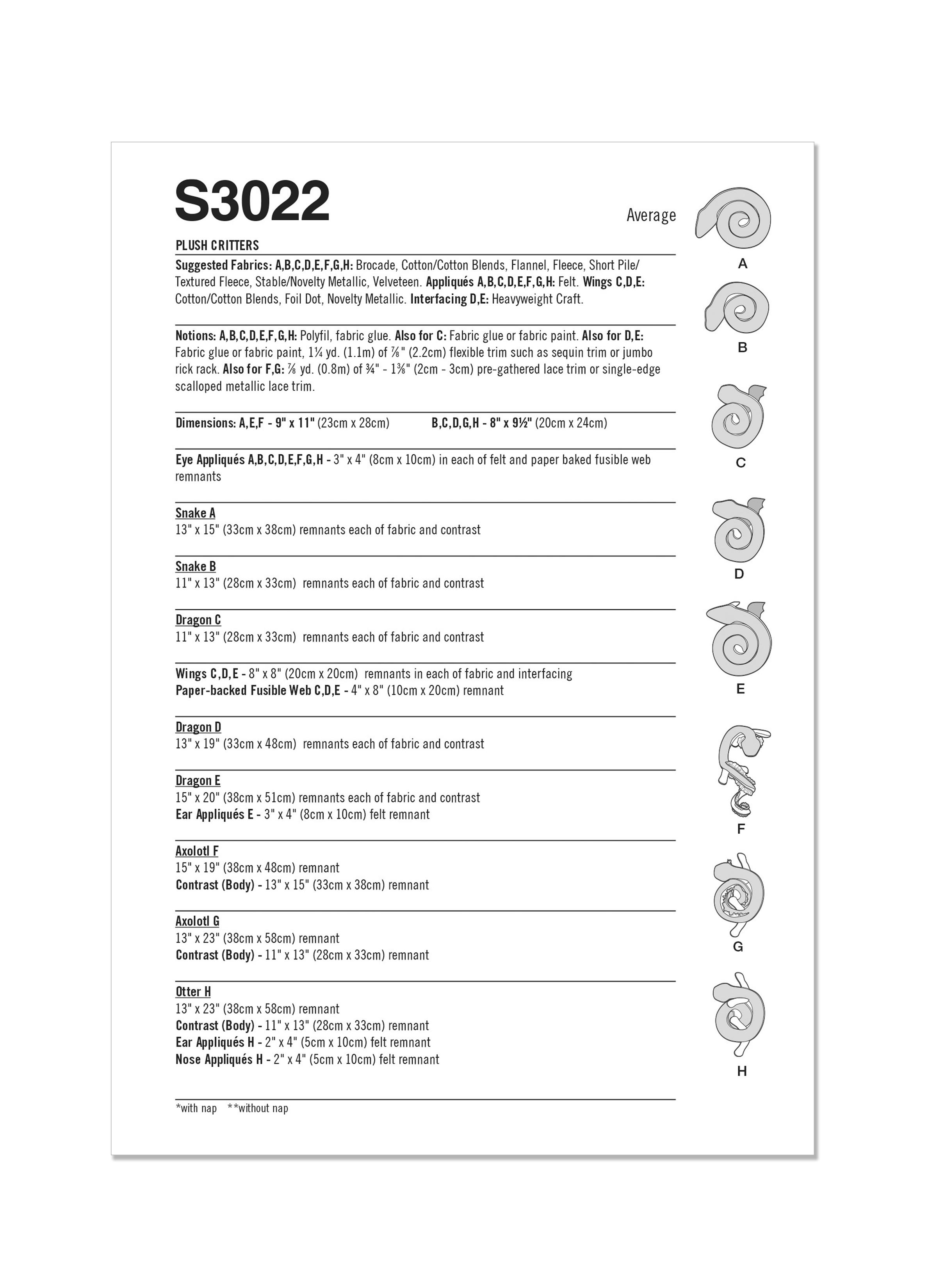 Simplicity Sewing Pattern S3022 - Plush Critters