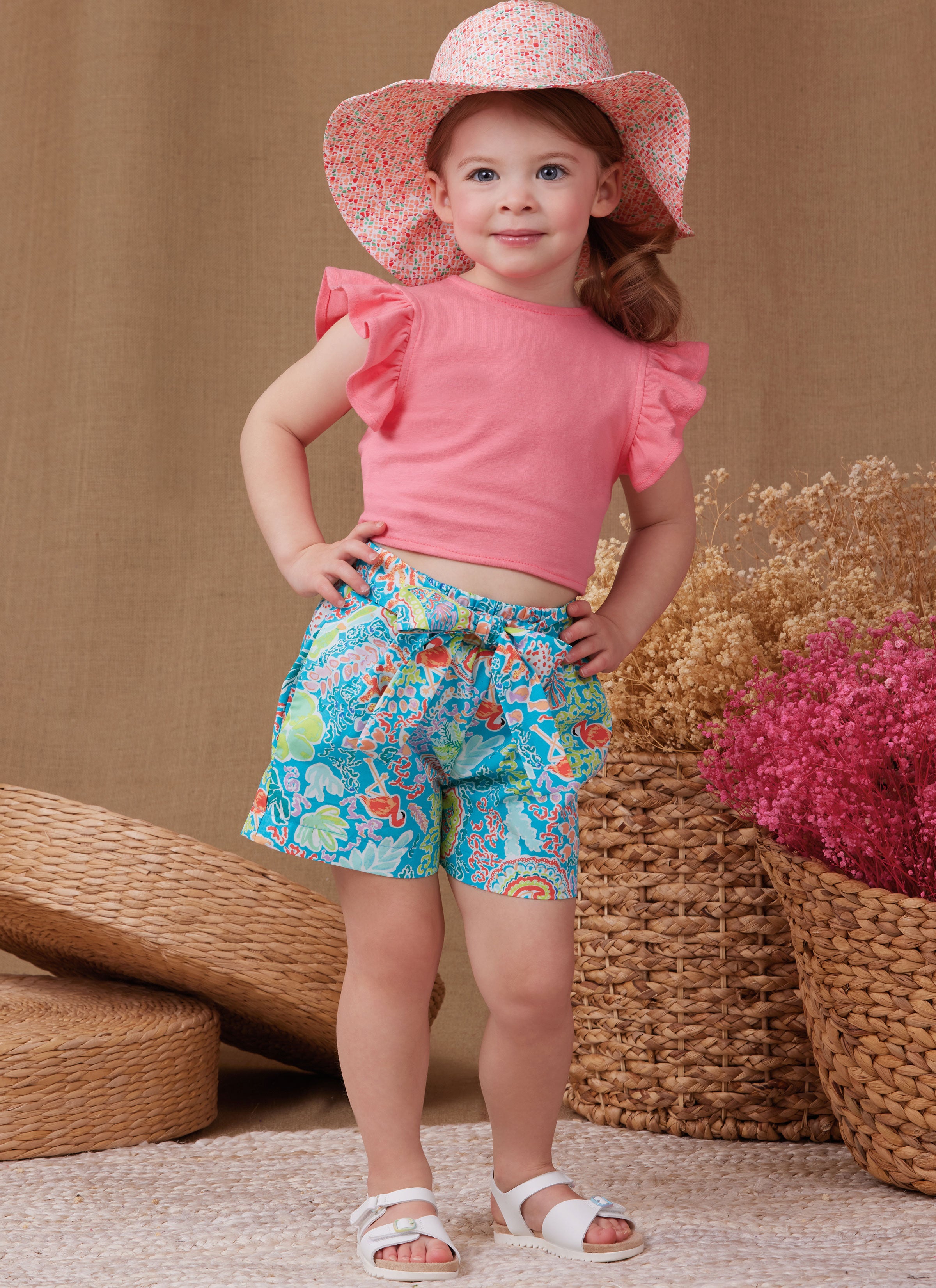 Simplicity Sewing Pattern S9961 - Toddlers' Shorts, Pants, Hat and Knit Top Worn Front or Back