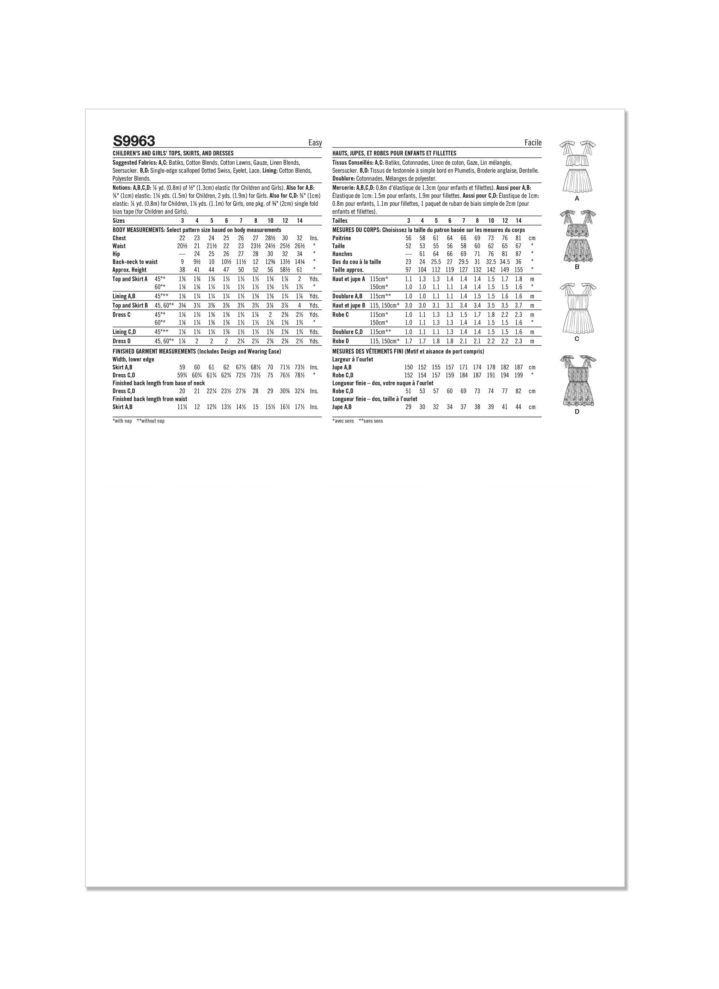 Simplicity Sewing Pattern S9963 - Children's and Girls Tops, Skirts, and Dresses