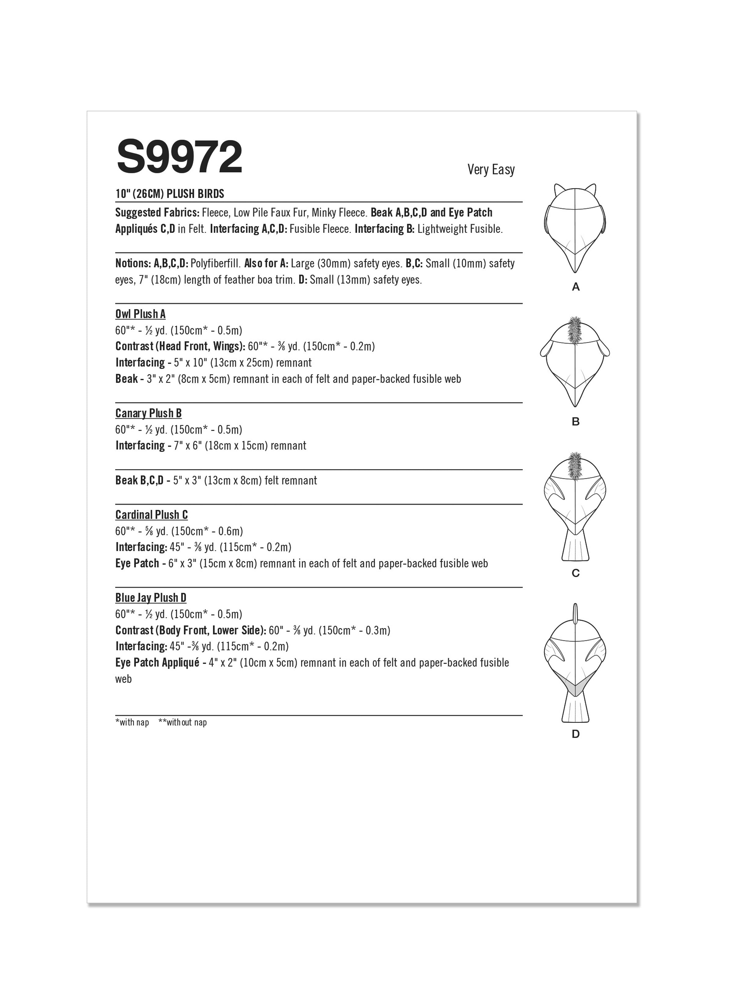 Simplicity Sewing Pattern S9972 - Plush Birds