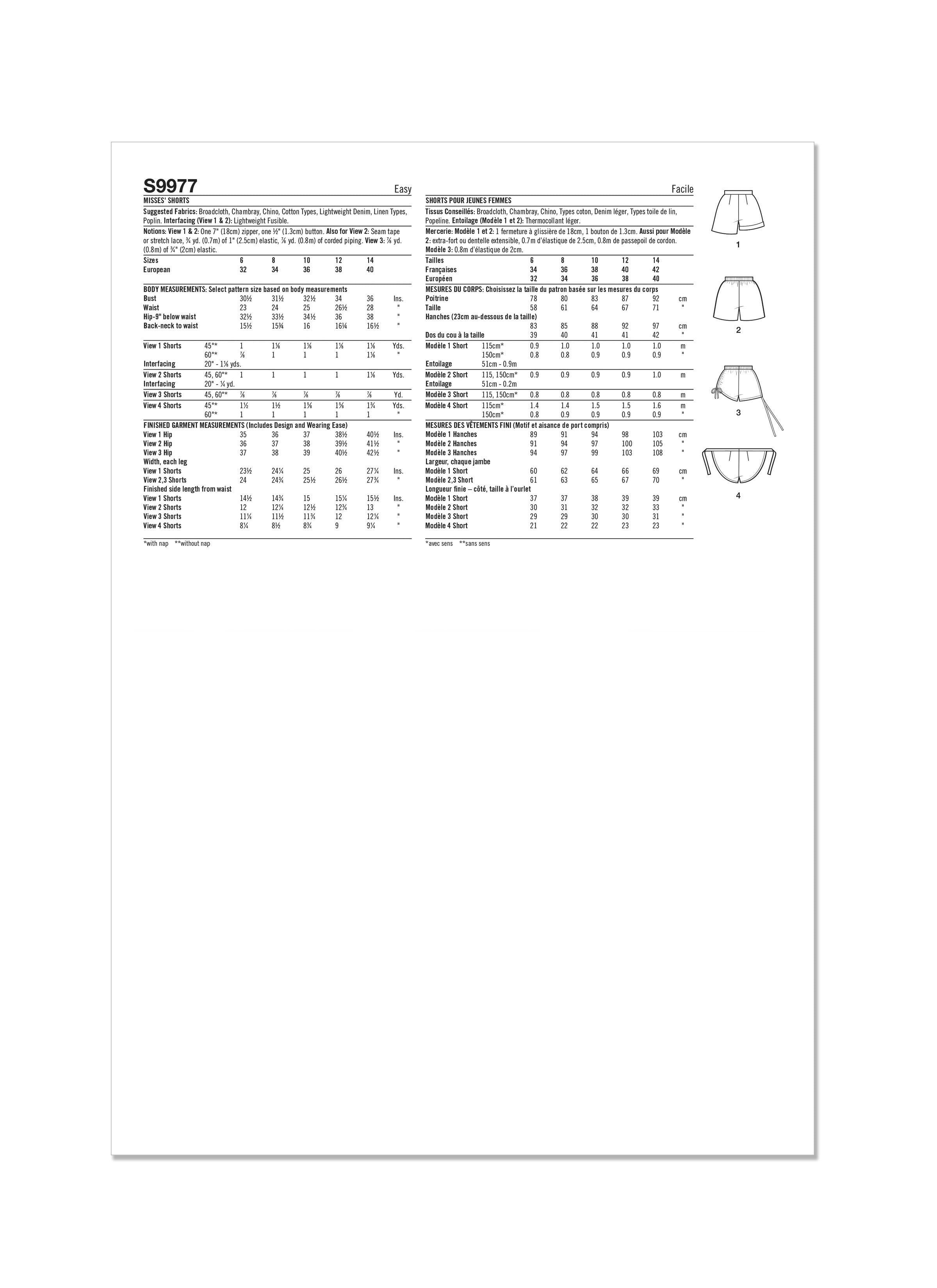 Simplicity Sewing Pattern S9977 - Misses' Shorts