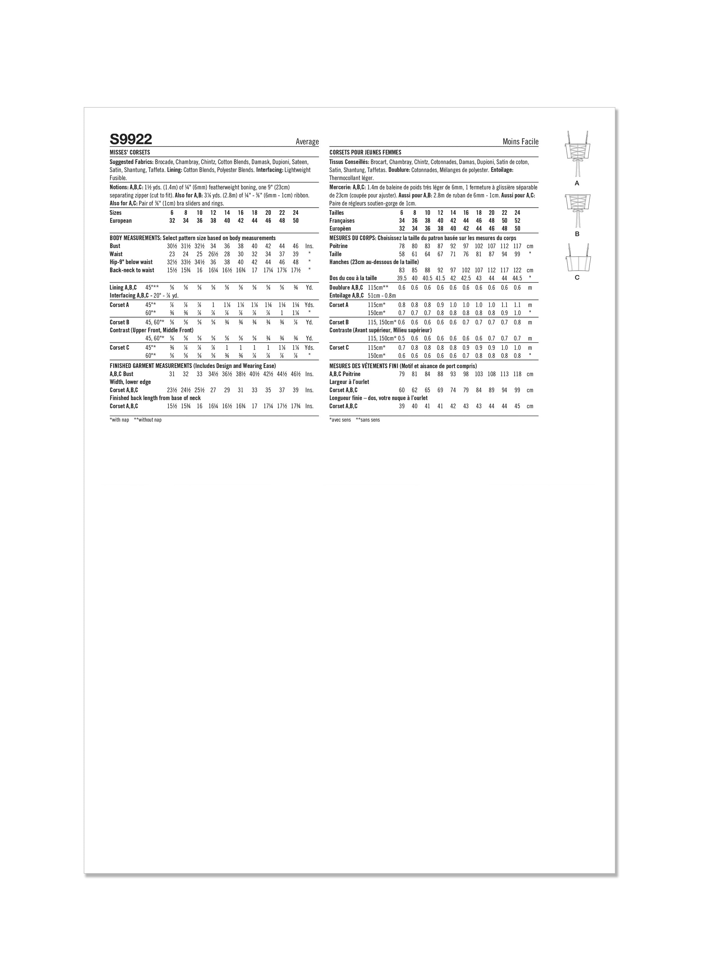 Simplicity Sewing Pattern S9922 - Misses' Corsets