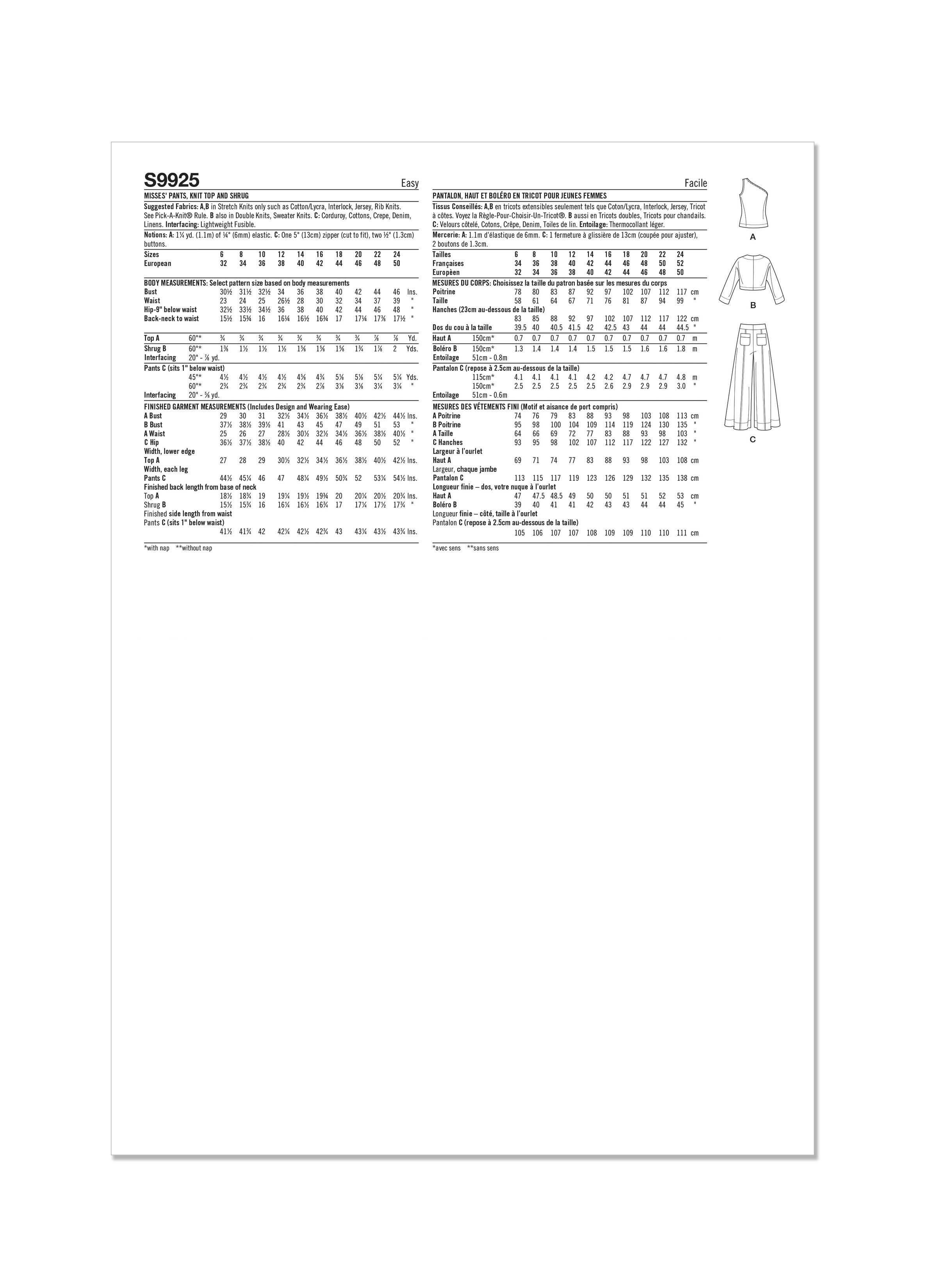 Simplicity Sewing Pattern S9925 - Misses' Pants, Knit Shrug and Top