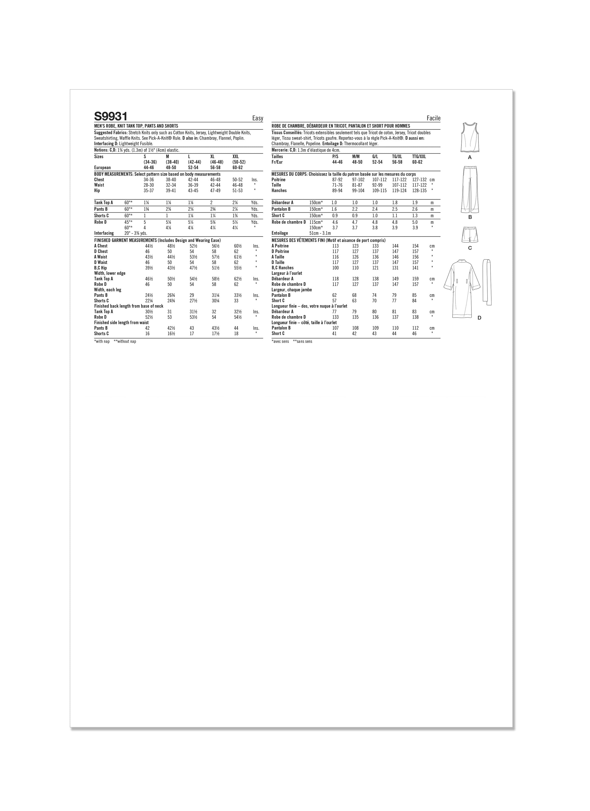 Simplicity Sewing Pattern S9931 - Men's Robe, Knit Tank Top, Pants and Shorts by Norris Danta Ford