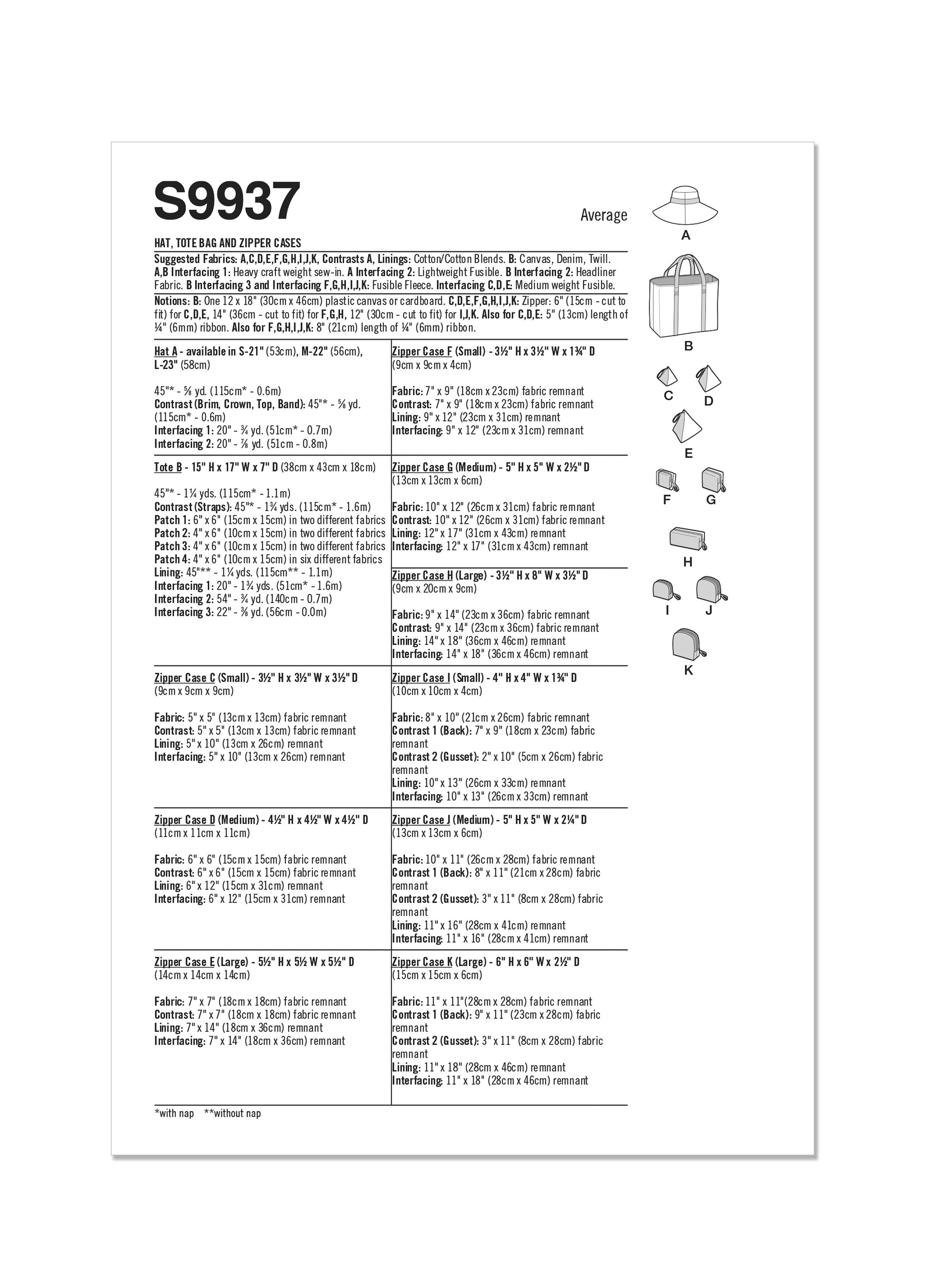 Simplicity Sewing Pattern S9937 - Hat, Tote Bag and Zipper Cases