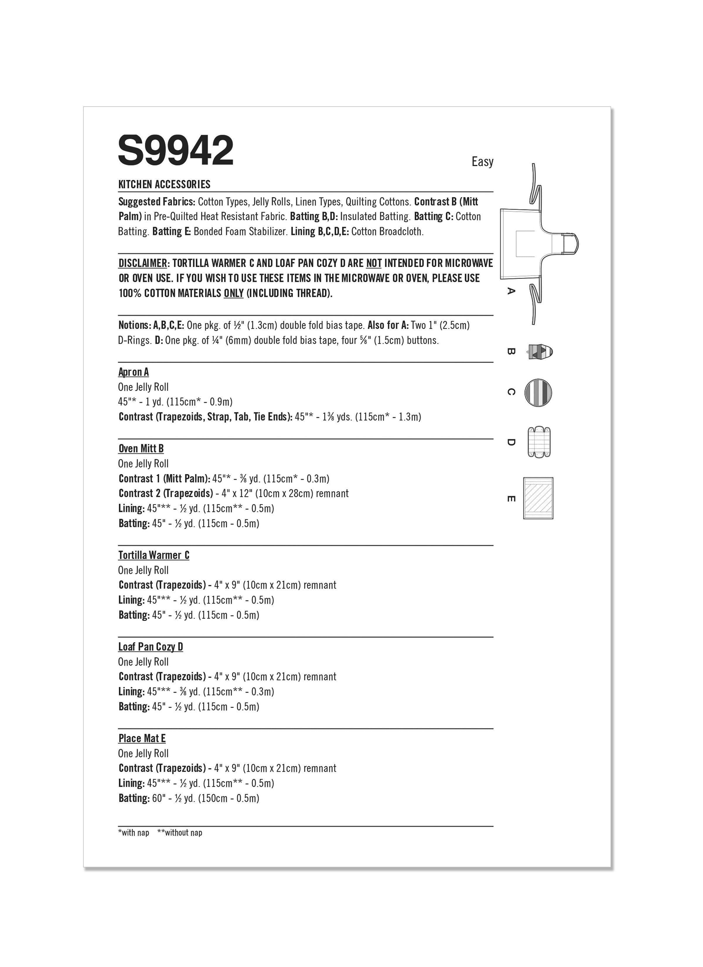 Simplicity Sewing Pattern S9942 - Kitchen Accessories by Carla Reiss Design