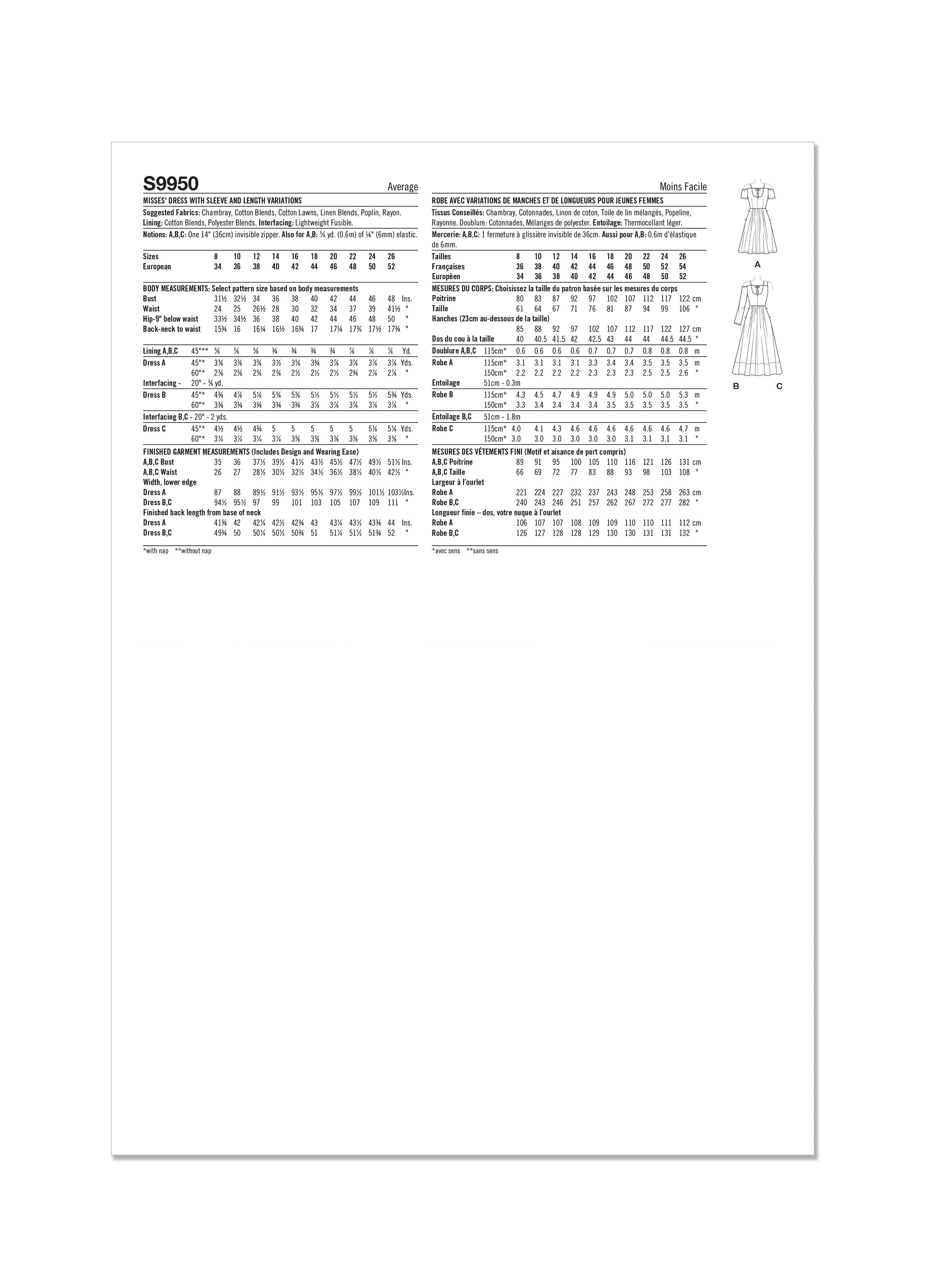 Simplicity Sewing Pattern S9950 - Misses' Dress with Sleeve and Length Variations
