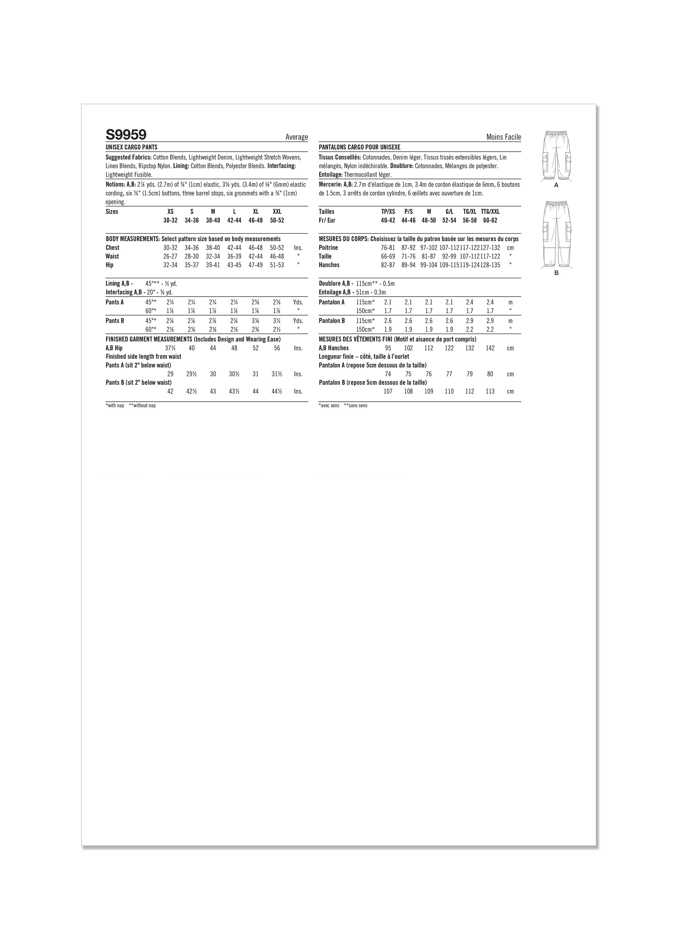 Simplicity Sewing Pattern S9959 - Unisex Cargo Pants