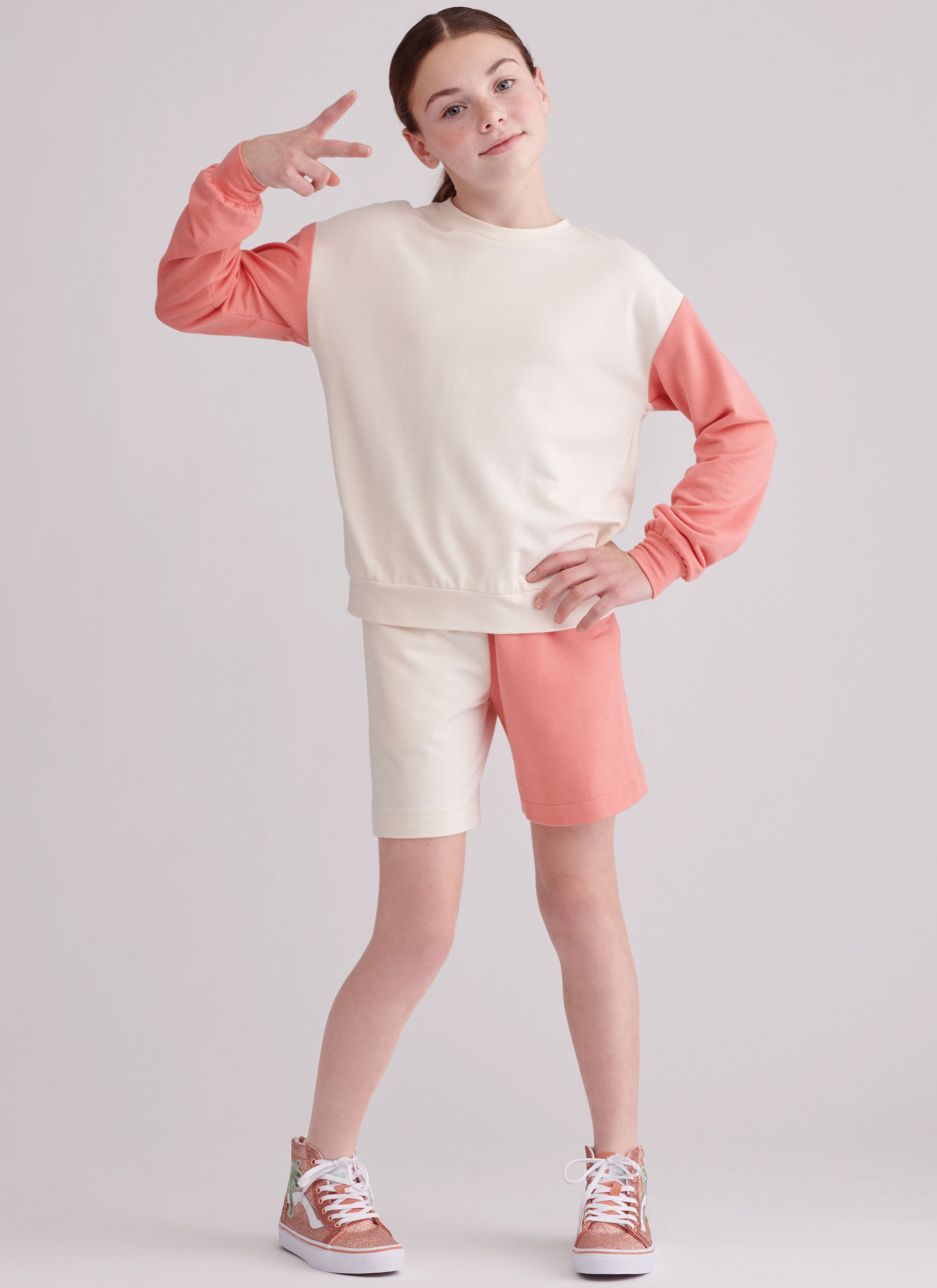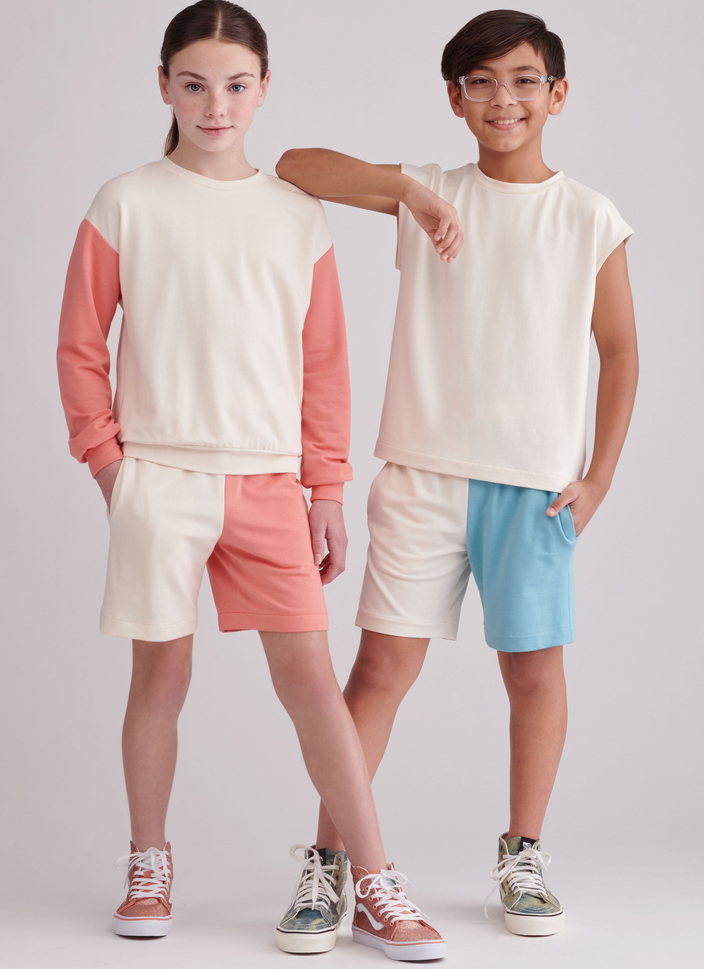 Simplicity Sewing Pattern S9801 - Girls' and Boys' Sweatshirts and Shorts
