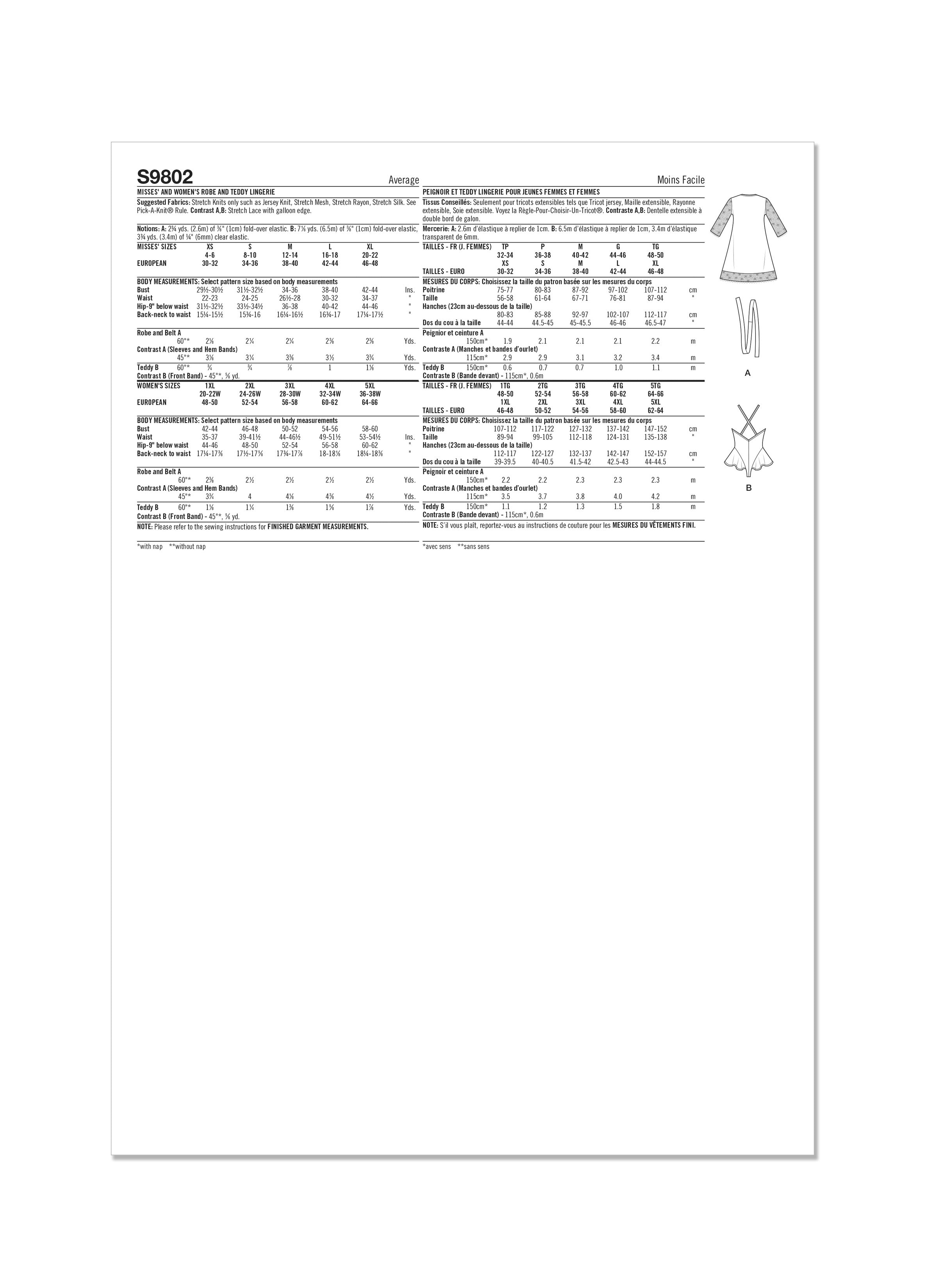 Simplicity Sewing Pattern S9802 - Misses' and Women's Robe with Belt and Teddy Lingerie by Madalynne Intimates