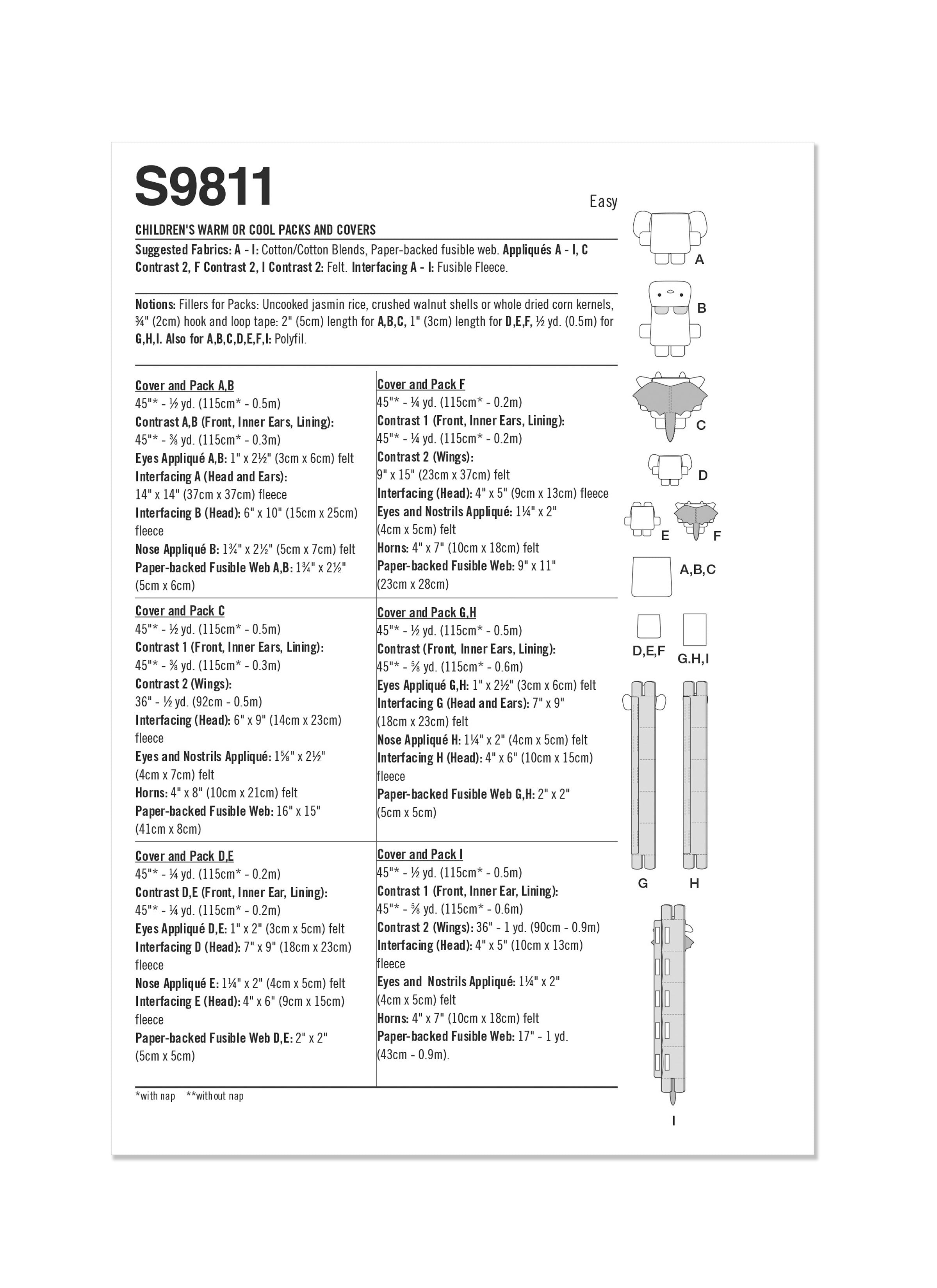 Simplicity Sewing Pattern S9811 - Children's Warm or Cool Packs and Covers