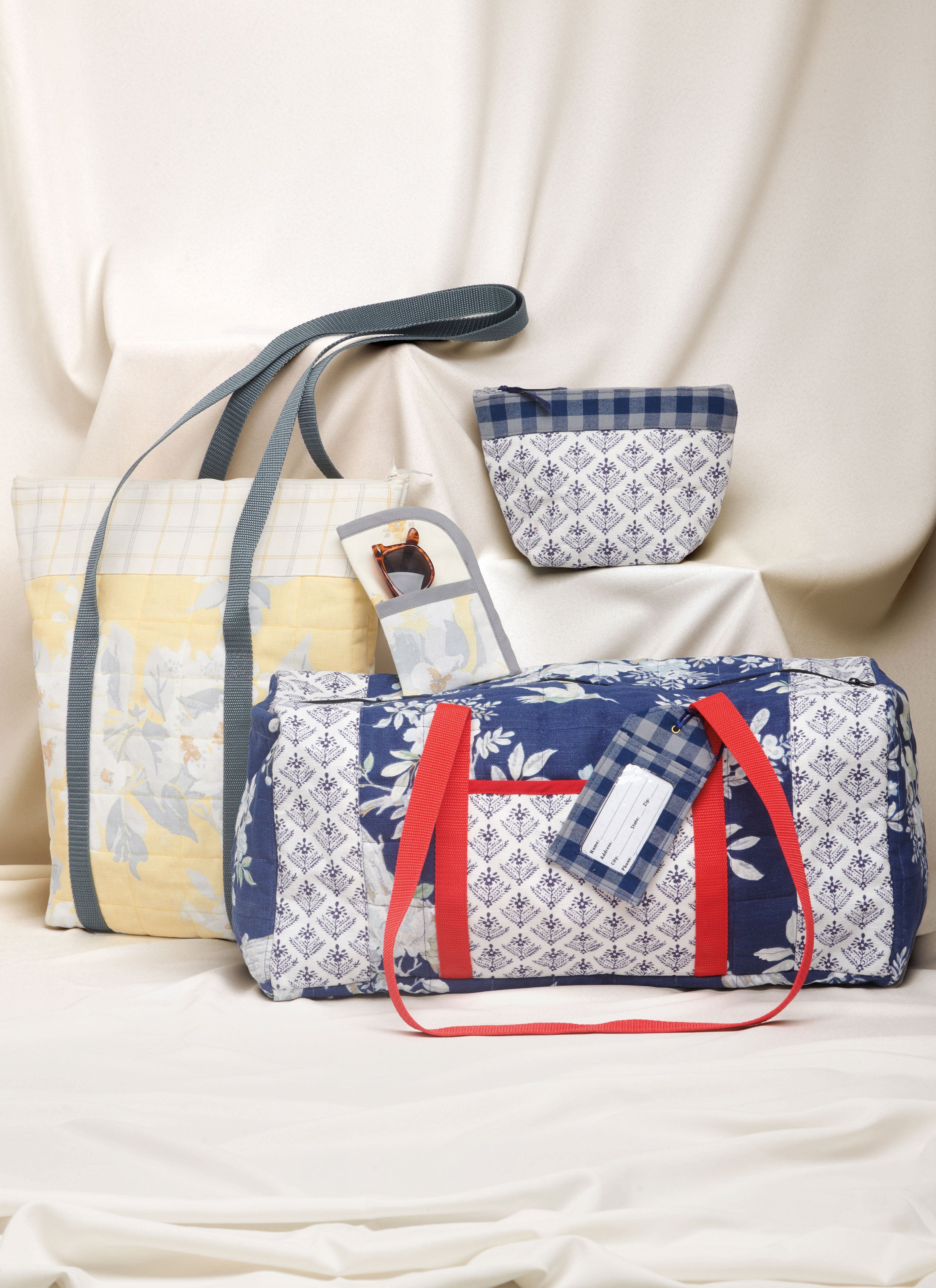 Simplicity Sewing Pattern S9814 - Hat in Three Sizes, Duffel, Tote, Cosmetic Case, Eyeglass Case and Luggage Tag by Laura Ashley