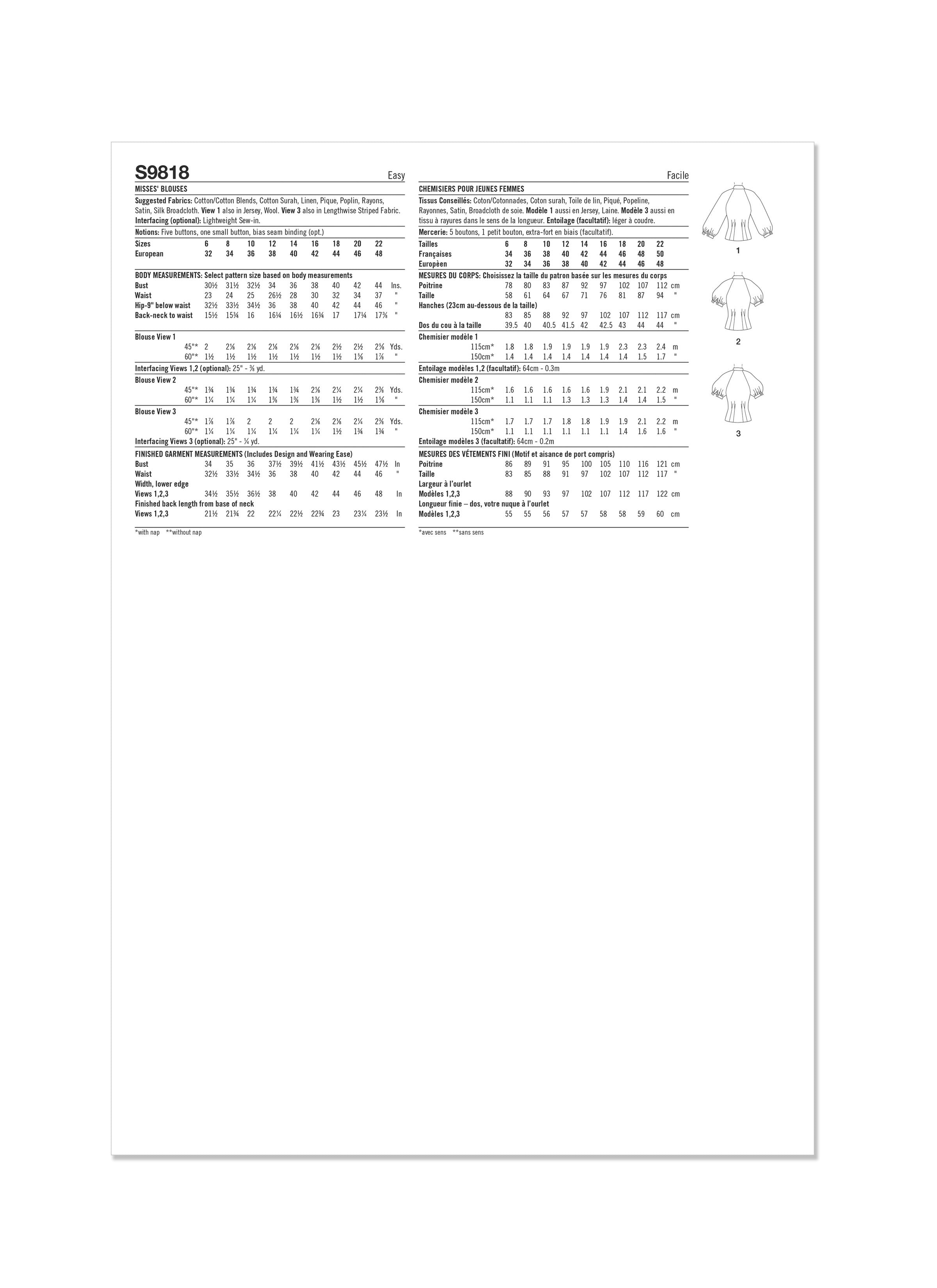 Simplicity Sewing Pattern S9818 - Misses' Blouses