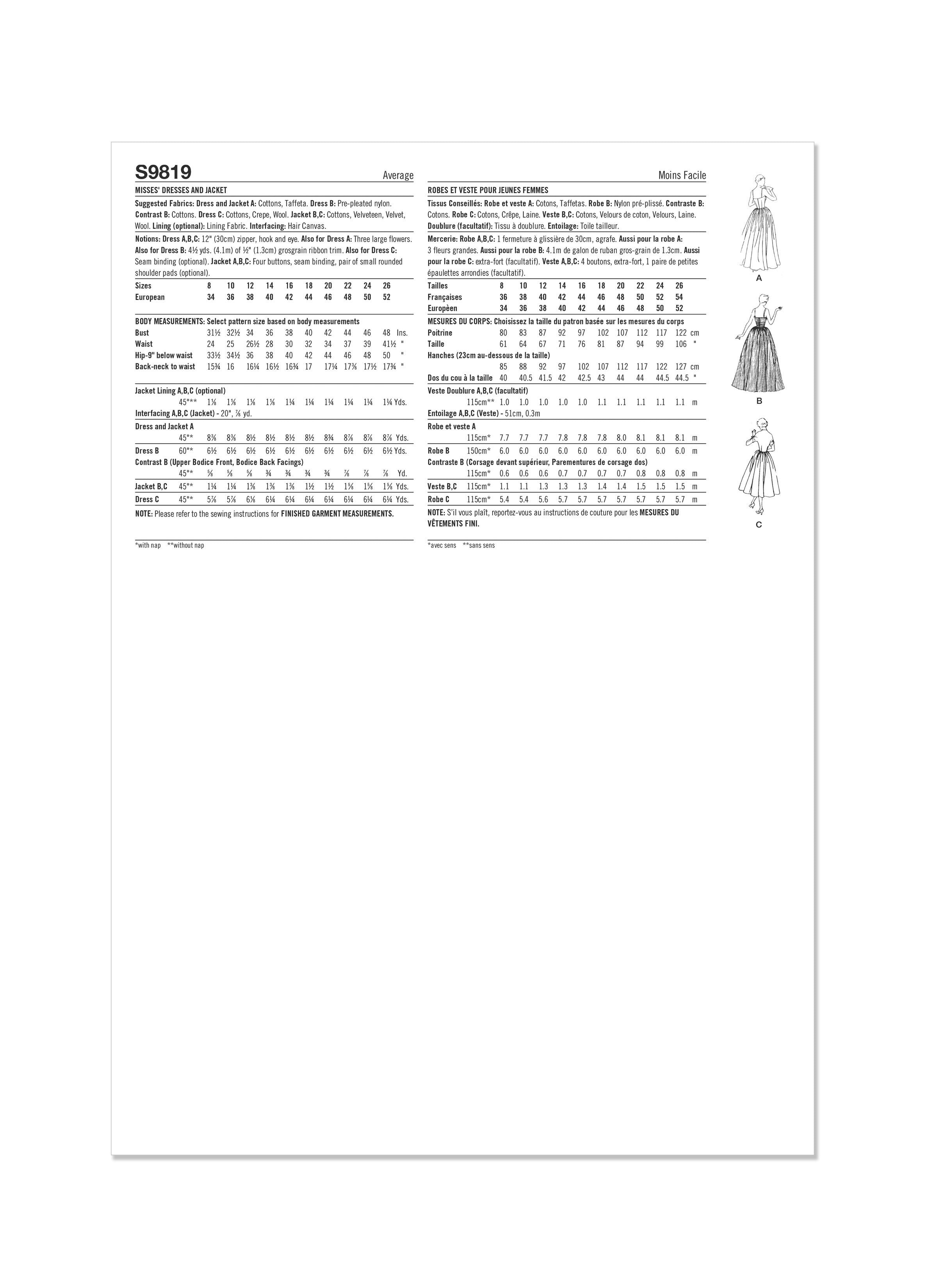 Simplicity Sewing Pattern S9819 - Misses' Dresses and Jacket