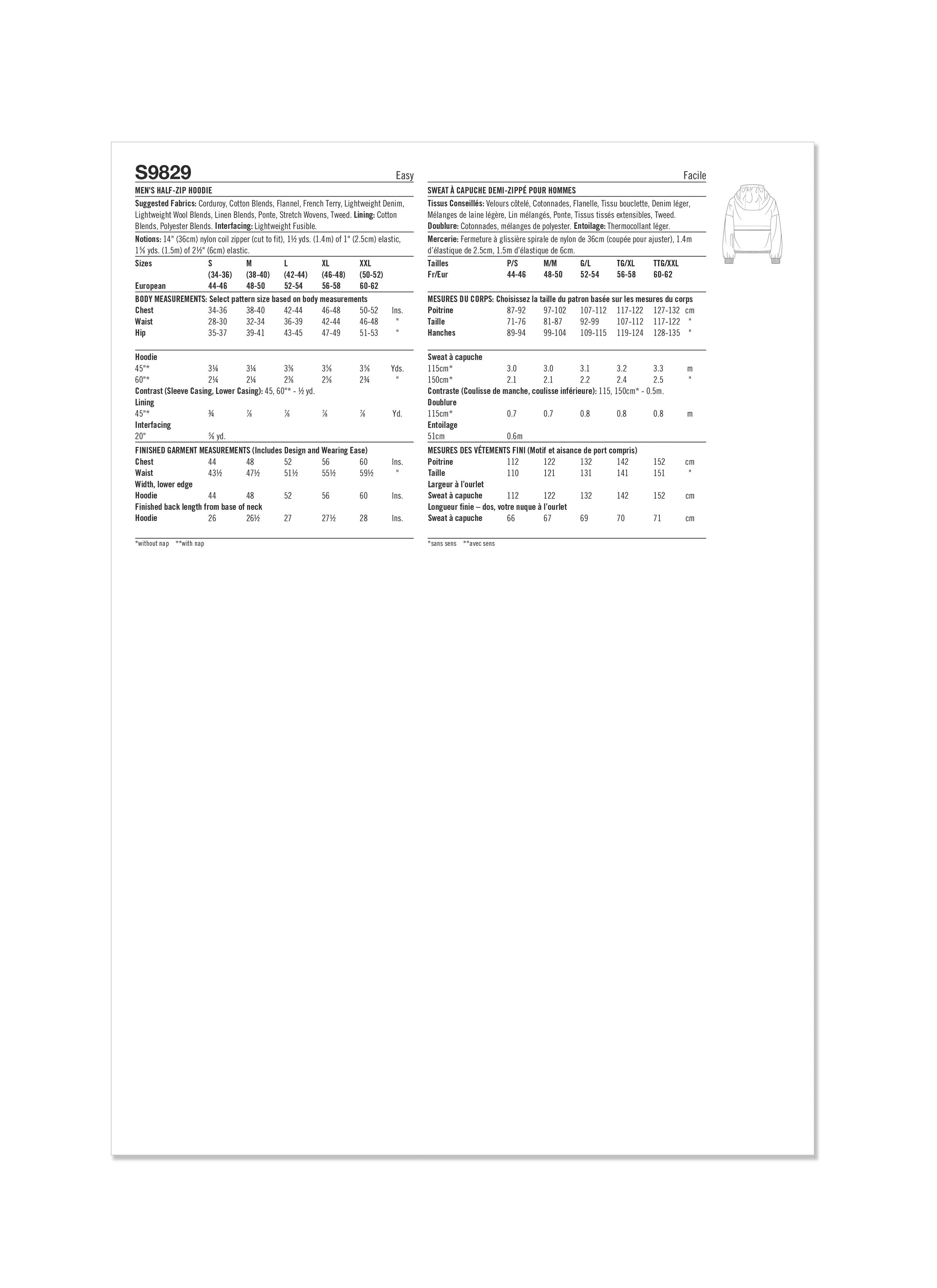Simplicity Sewing Pattern S9829 - Men's Half Zip Hoodie