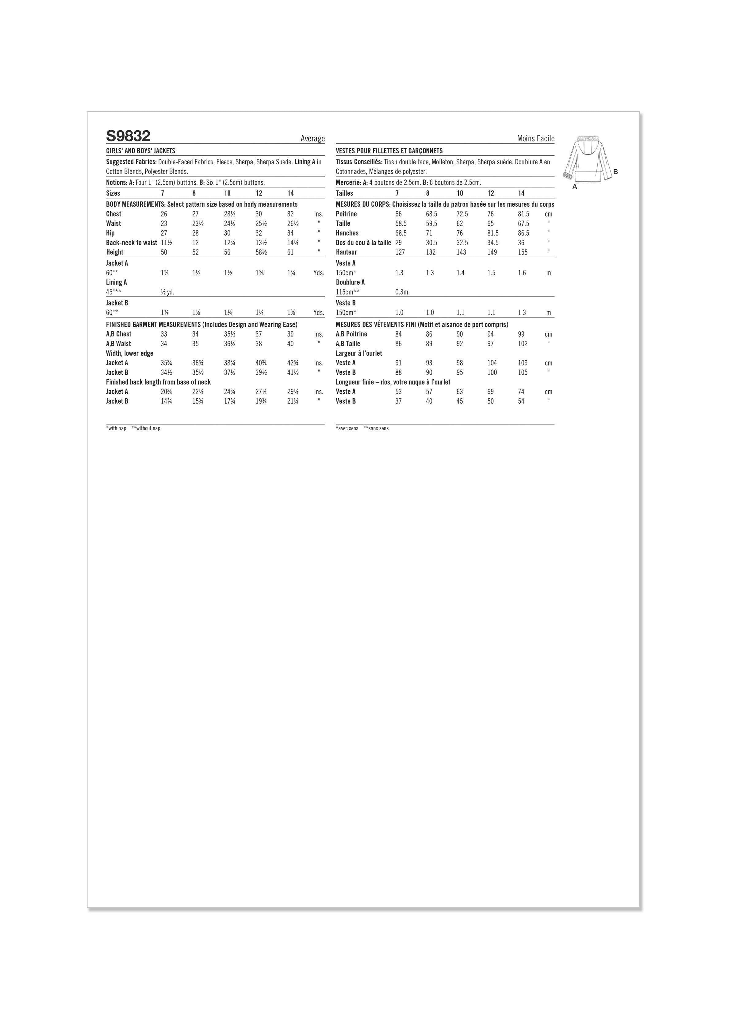 Simplicity Sewing Pattern S9832 - Girls' and Boys' Jacket In Two Lengths