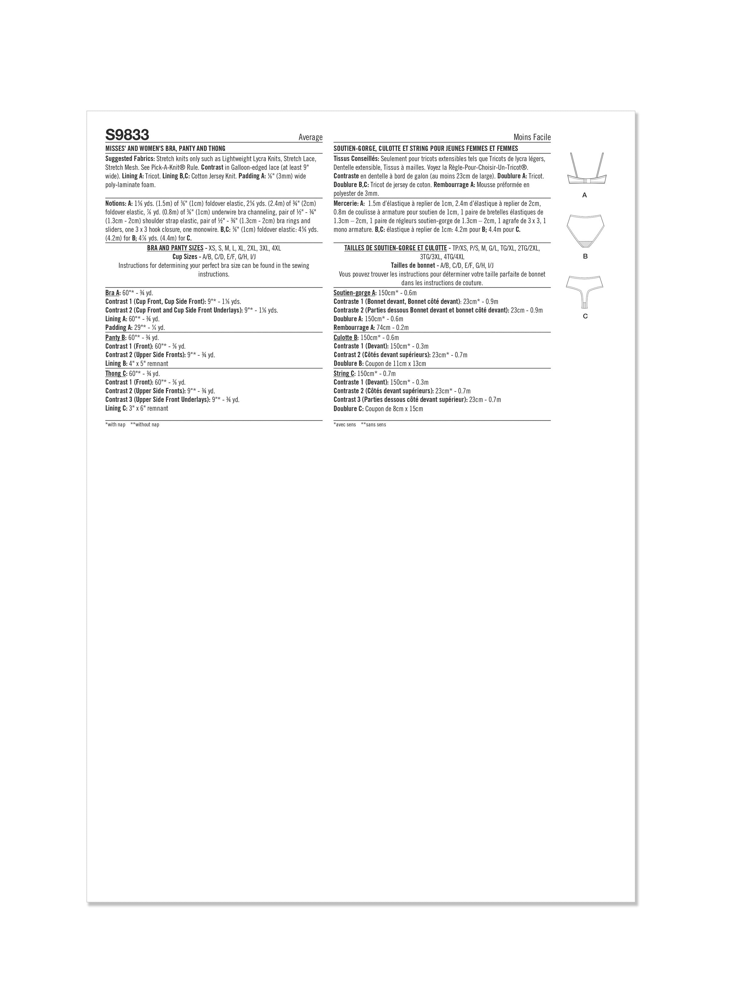 Simplicity Sewing Pattern S9833 - Misses' and Women's Bra, Panty and Thong by Madalynne Intimates
