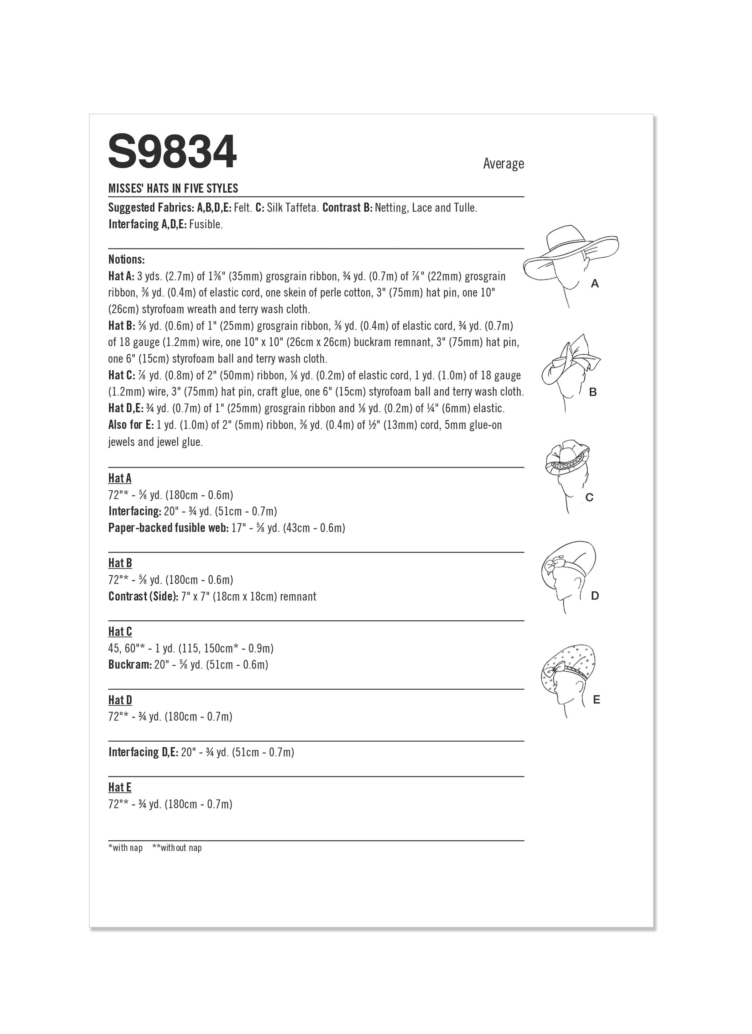 Simplicity Sewing Pattern S9834 - Misses' Hats in Five Styles