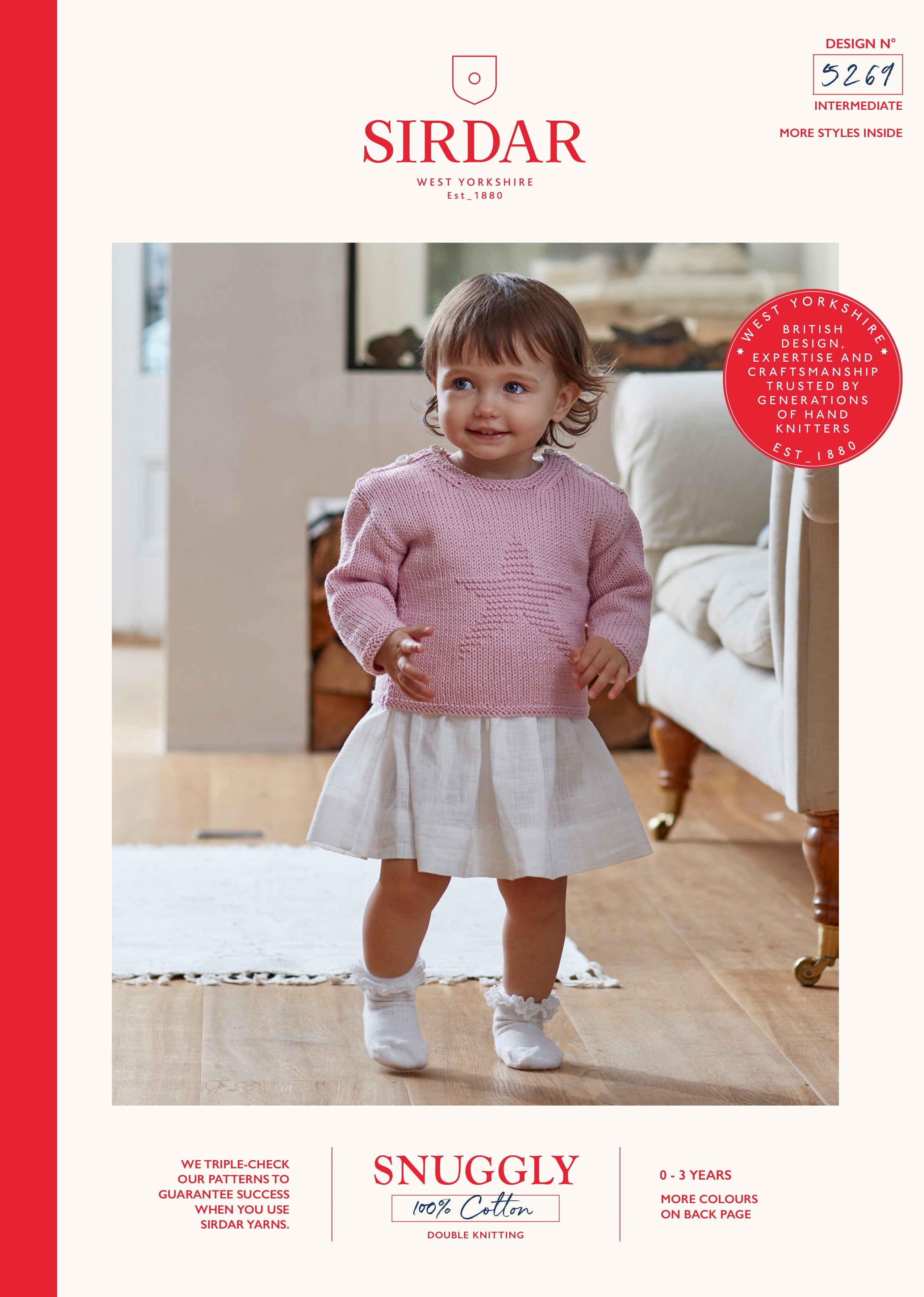 Sirdar Snuggly 100% Cotton Knitting Pattern - 5269 Baby Star Sweater