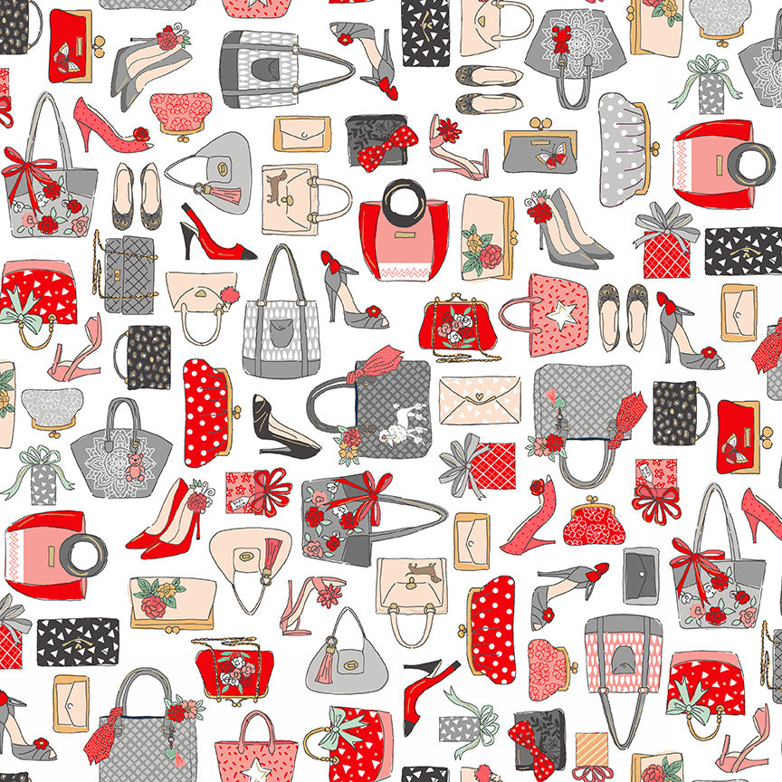 Inspired by a love of pampering, whether that be a little makeover or a spot of shopping, comes the Pamper collection from Makower. Finished in a chic colour palette of grey, pink and red, this glamorous set of prints is one for all the pamper lovers out there! This fun print is for all those who just can't resist the allure of pretty handbags and shoes... we're with you there! Finished with metallic gold accents for that extra special touch.