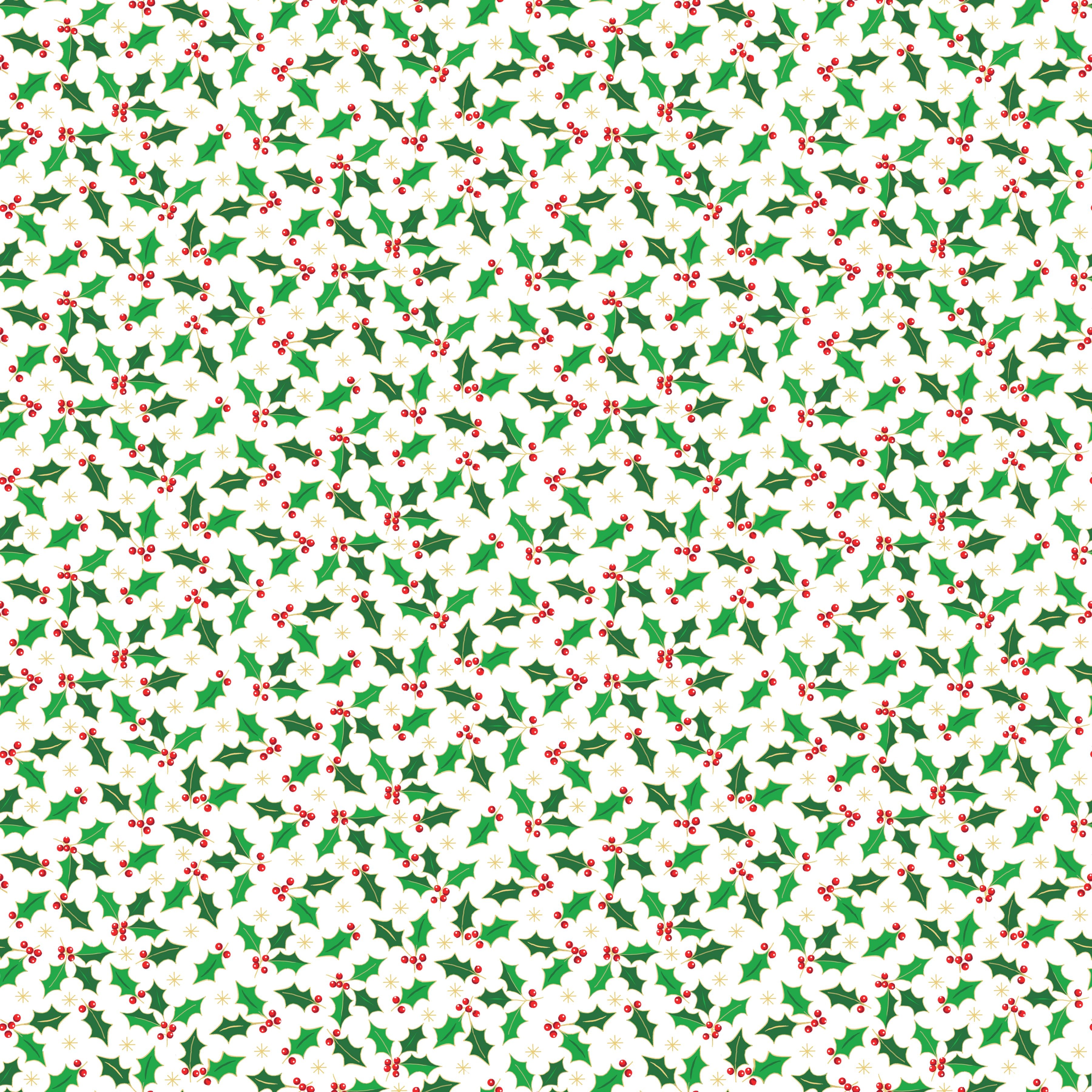 Makower Santa's Christmas - Holly White (metallic) - 100% Cotton Fabric