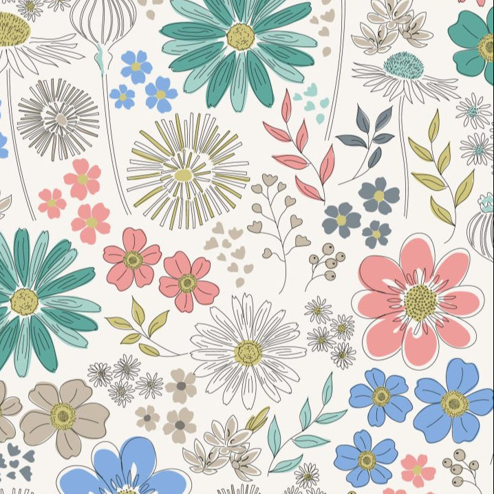The Craft Cotton Co Secret Garden features delicate line drawing illustrations in a fresh colour palette of teal, blush pink, and grey. This 100% cotton fabric collection is perfect for quilting, patchwork, and creating spring-inspired accessories and clothing. We love this modern floral print, complimented by beautiful linework and pops of spring colour!
