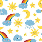 Bring happy vibes and sunshine smiles with this colourful collection from 3 Wishes! This cheerful print has it all - smiley suns, happy clouds, yawning winds and of course, some VERY bright rainbows to top it all off! Perfect for kids makes or adding a touch of sunshine to any project, whether it's a quilt or a fun piece of clothing, a toy or an accessory.