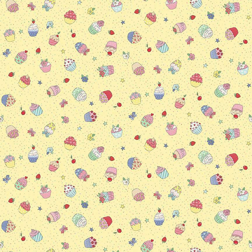 Makower Afternoon Tea - Cupcake Confetti Yellow - 100% Cotton Fabric