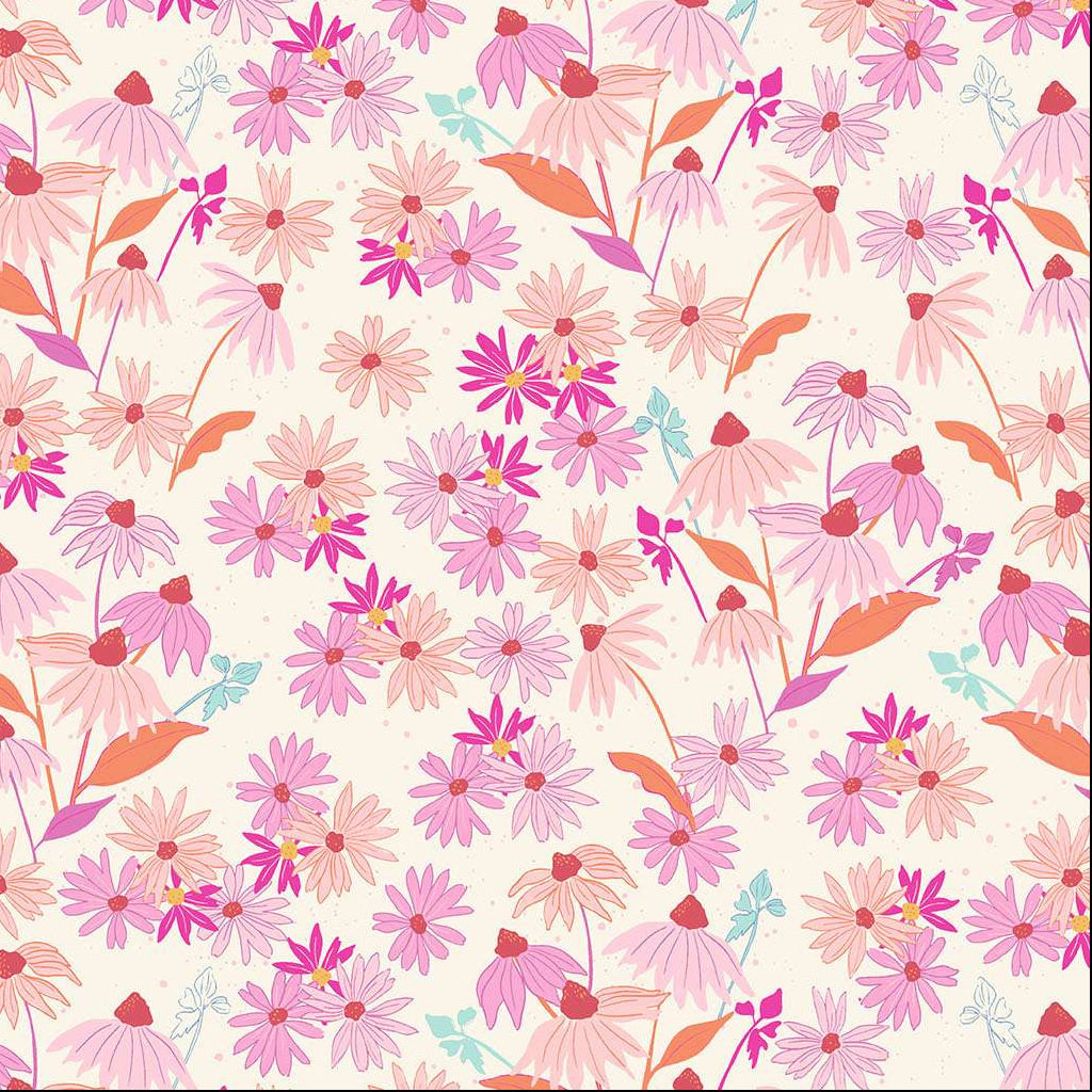 Andover Fabrics Petals and Stitches - Echinacea Cream - 100% Cotton Fabric