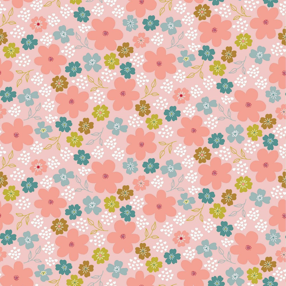 Bring some pretty to your project with this cute floral print jersey, set on a sugary pink background with pops of bubblegum and teal... perfect for kids and flower fanatics! This fabric is great for tops, leggings and t-shirts, with 4-way stretch for ultimate comfort and is certified organic for peace of mind.