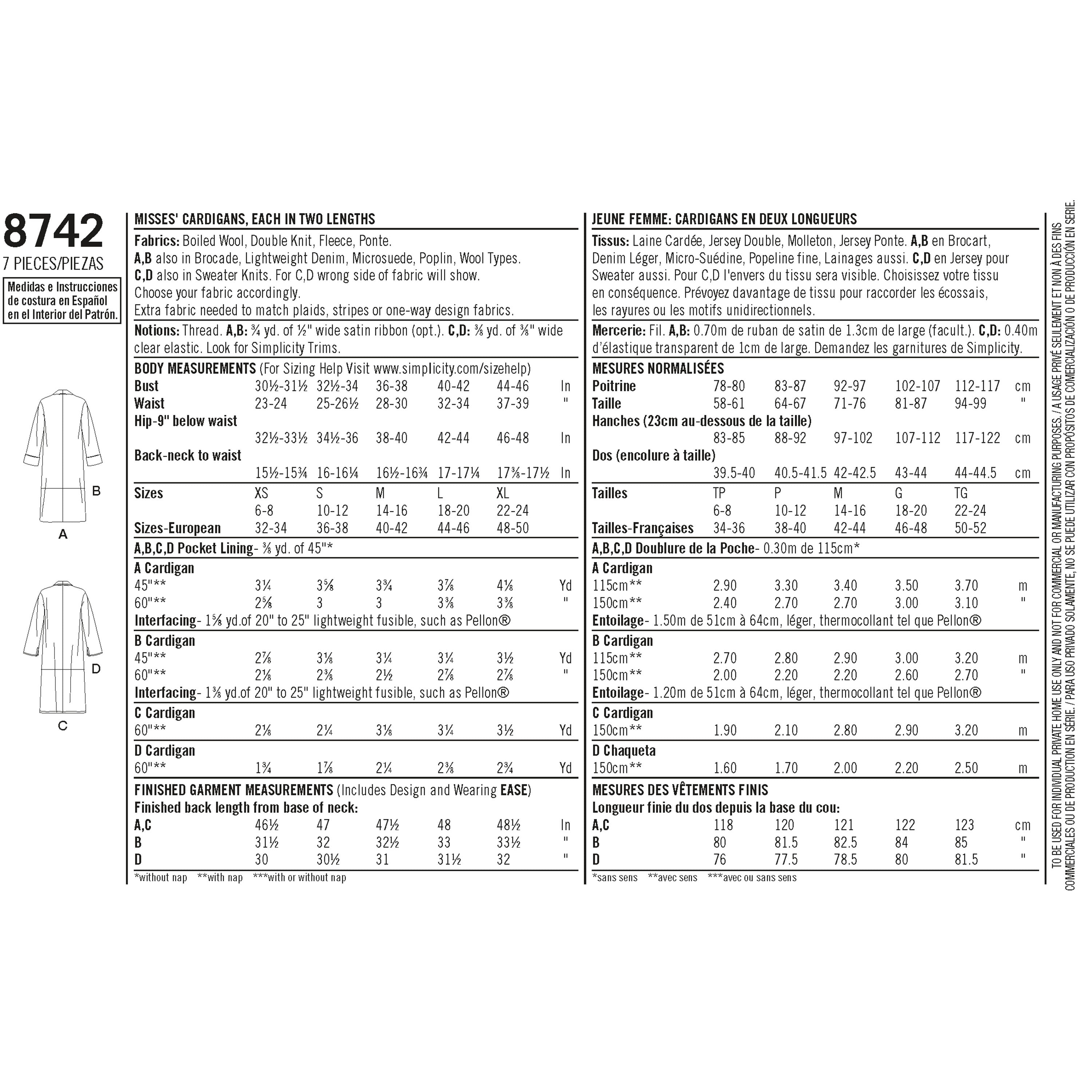 Simplicity Sewing Pattern S8742 - Women's Cardigan
