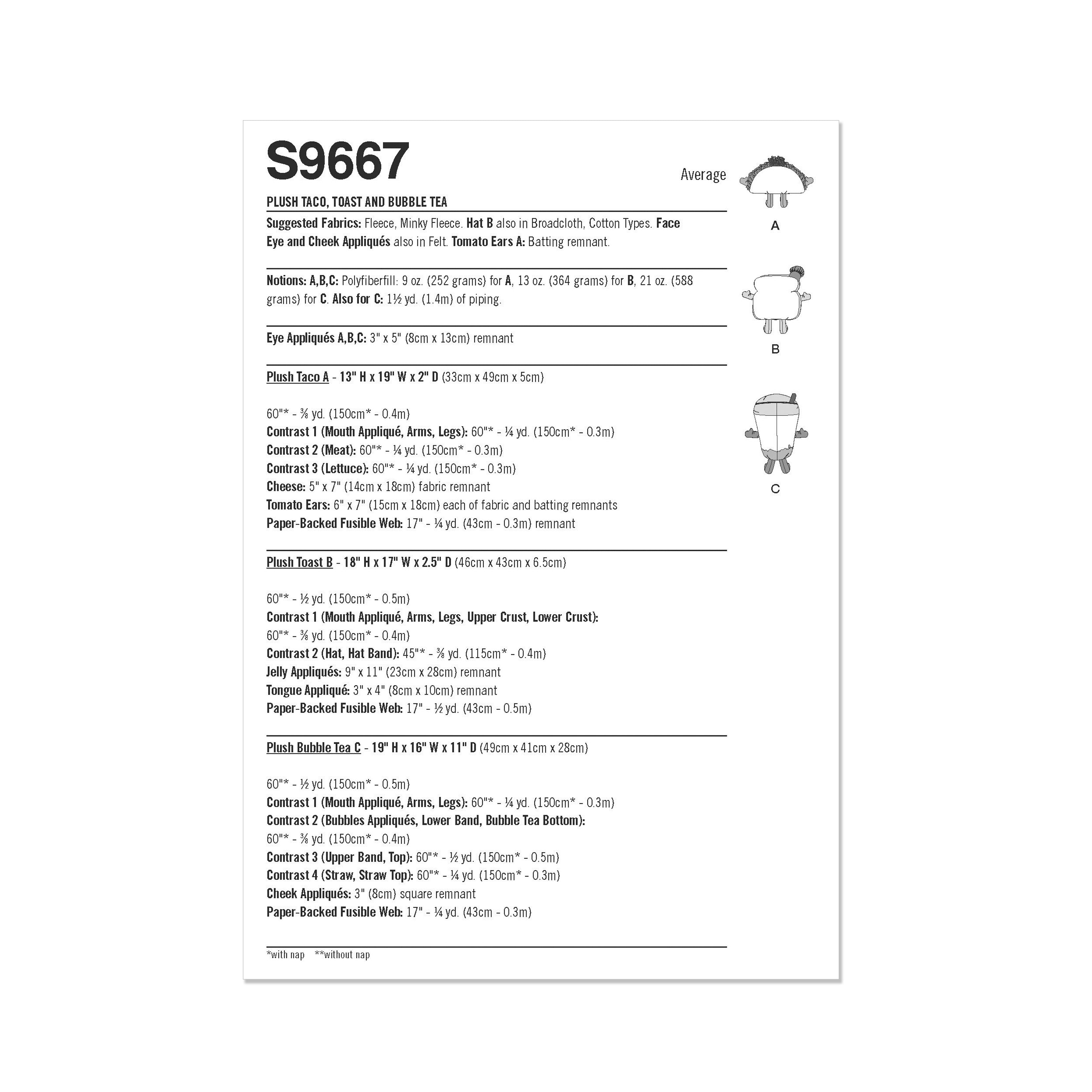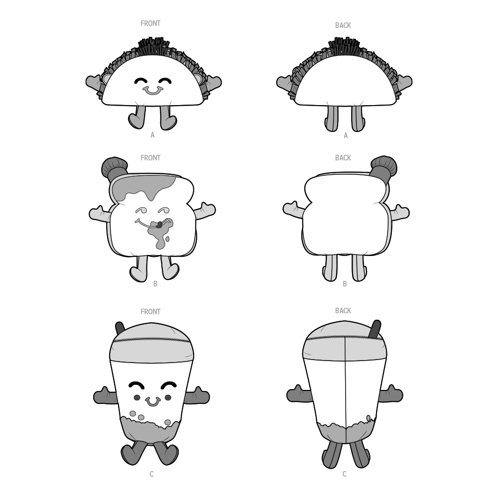 Simplicity Sewing Pattern S9667 - Plush Taco, Toast and Bubble Tea by Carla Reiss